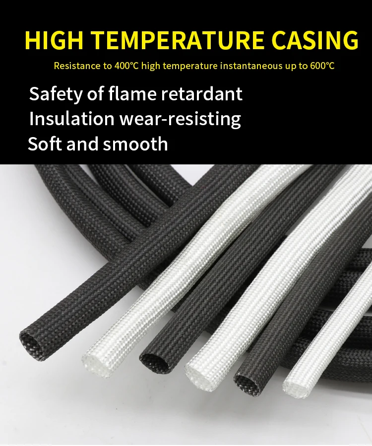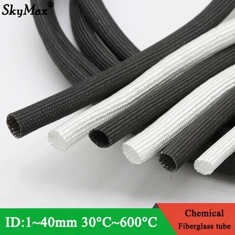 1M ID 1mm ~ 40mm funda de fibra de vidrio trenzada 600 grados C tubo de fibra de vidrio químico de alta temperatura manguito de fibra de vidrio negro blanco