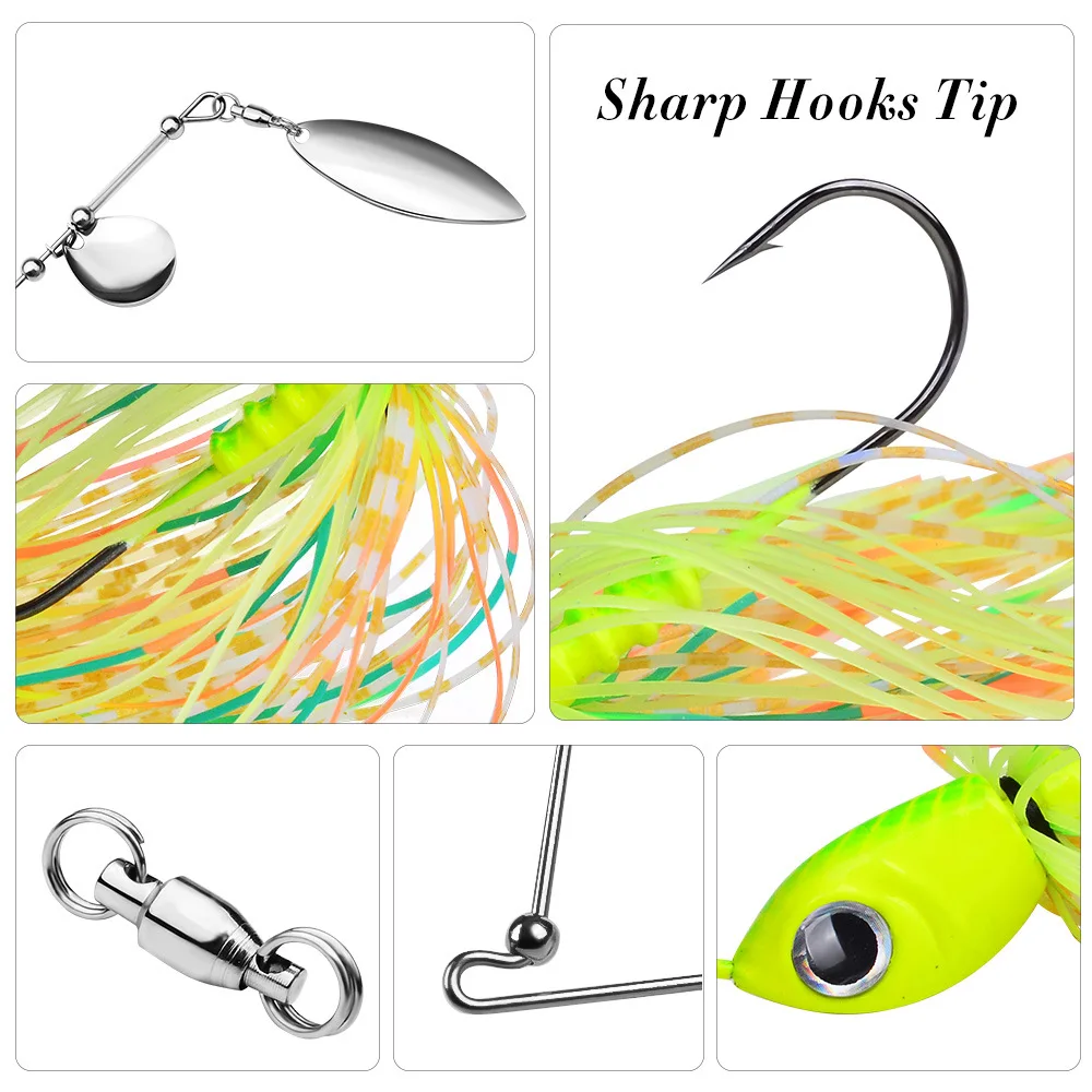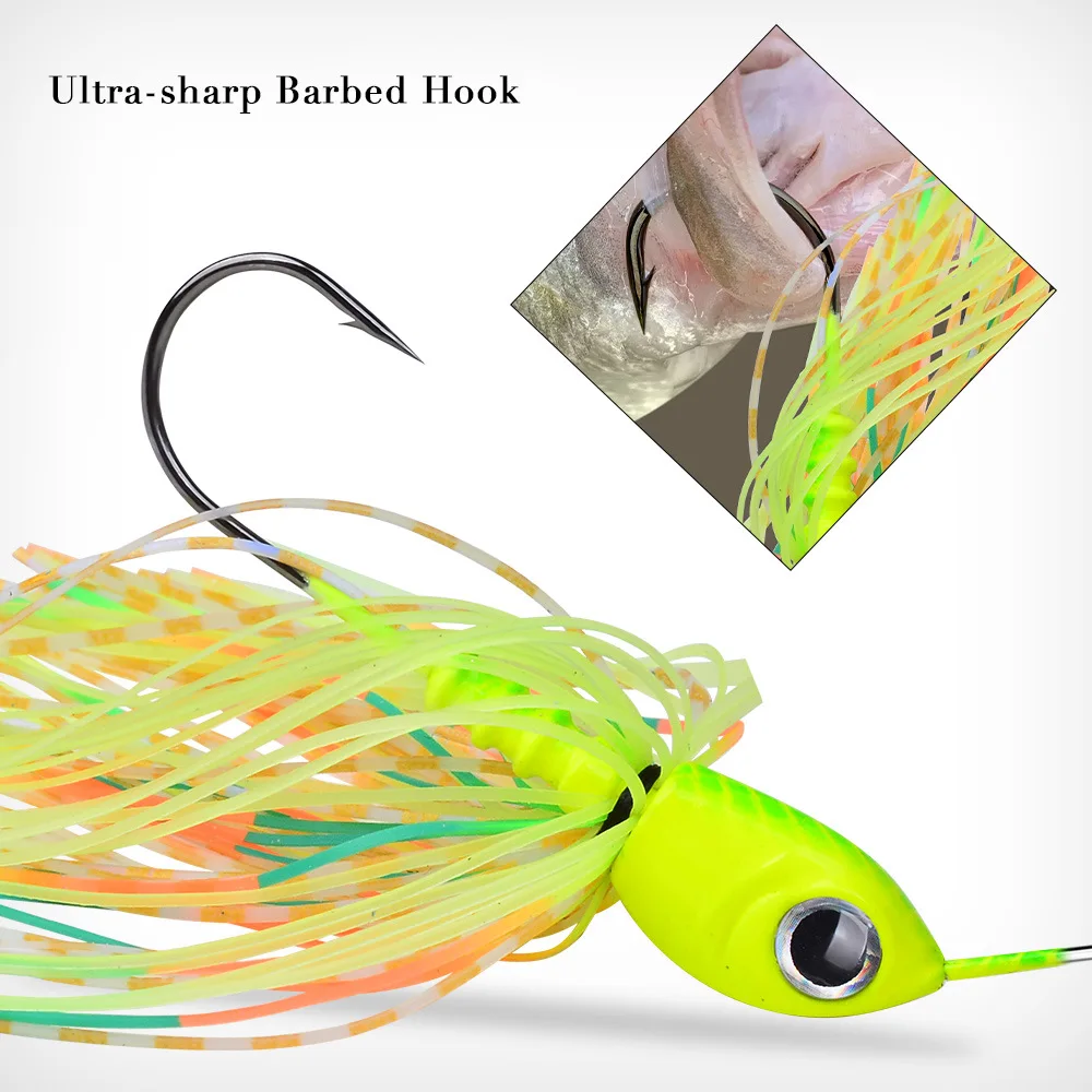 Tipo de ruido fuerte (buzzbait masculino barbudo): Su función principal es emitir ruido fuerte y luz refractada en la superficie del agua para atraer peces objetivo.Clasificación: Existen tipos de doble hoja y algunos modelos especiales.Al igual que SIPNER BAIT, tiene una potente función anti-colgar y es un producto premium para atacar zonas de obstáculos.