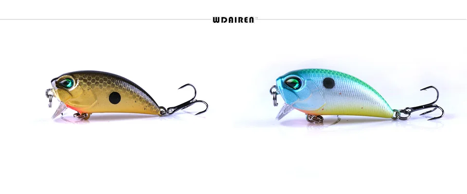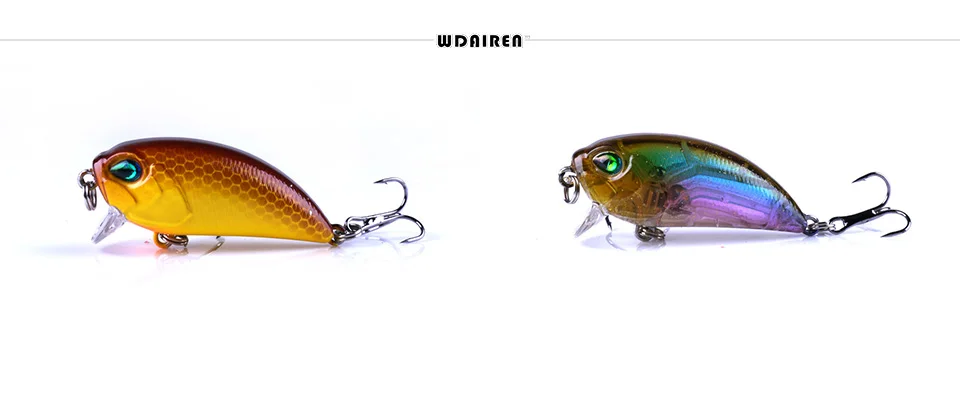 Brand: WDAIRENLure Type:Crank BaitsLure Weight: 8g/0.28oz Lure Length: 50mm/1.96in Diving depth: slowly sinkingHooks:6# Japan BKK HookEyes: 3D Fish eyesRings: Flat ringsColors: 6 different colorsPackage List:1 * Fishing Lure