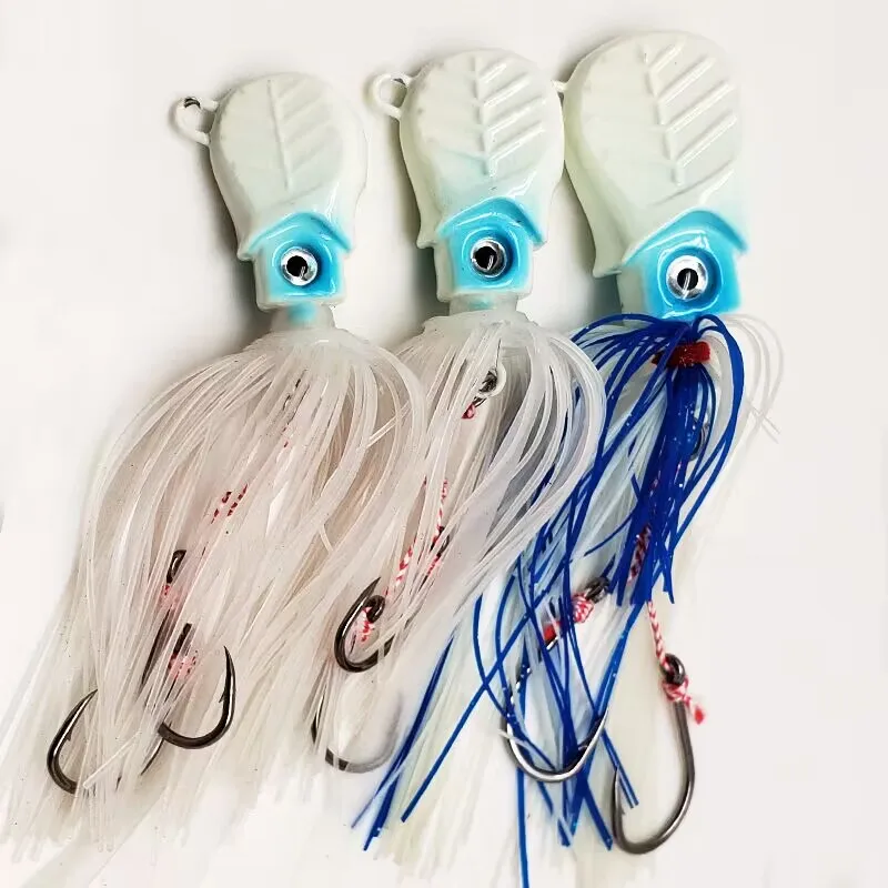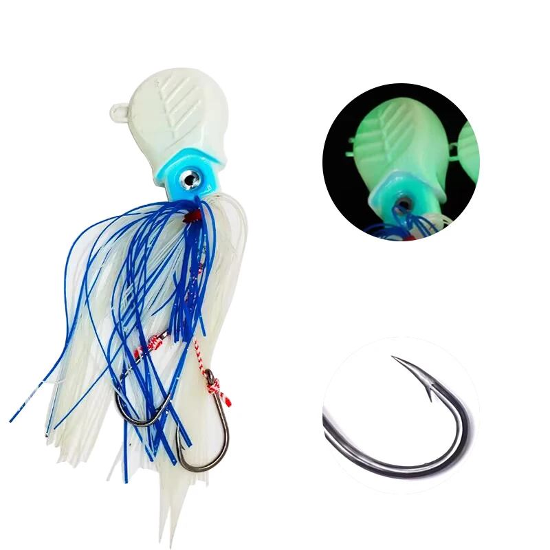 1pc120g cabeza de cobre brillante pulpo calamar falda cebo con gancho luminoso señuelo de pesca de arrastre de gran juego