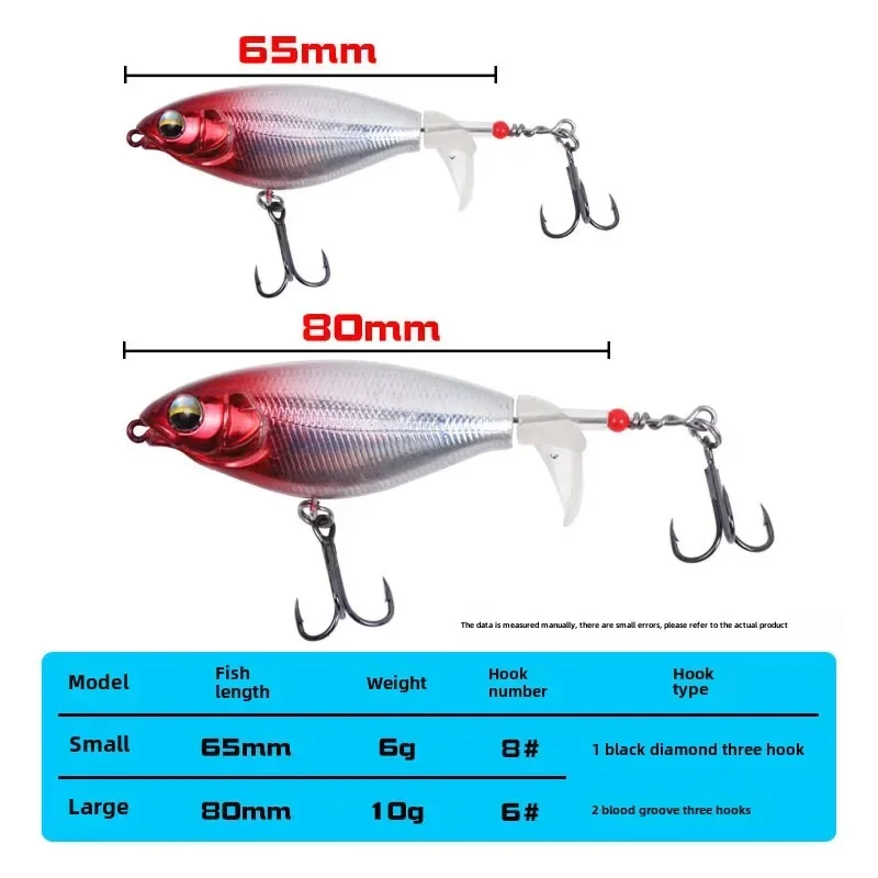 Construcción duradera: equipado con una cámara BBS de acero inoxidable y#10 anzuelos triples de acero al carbono para un uso duradero.