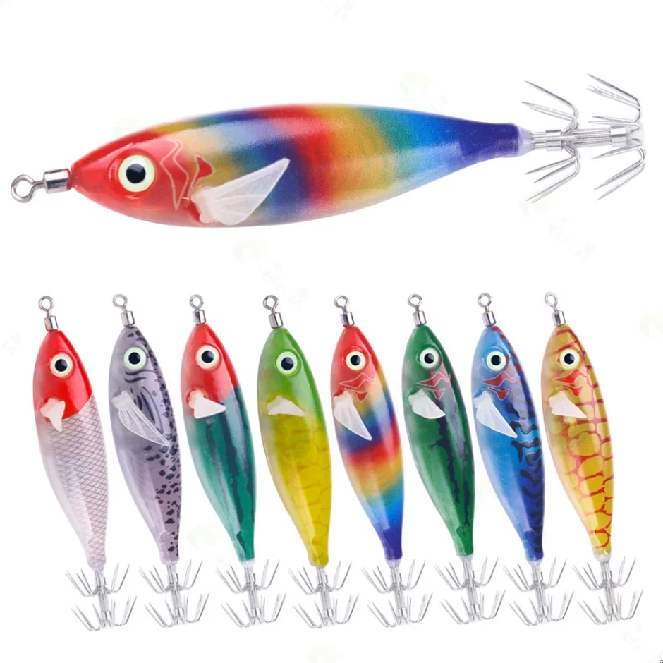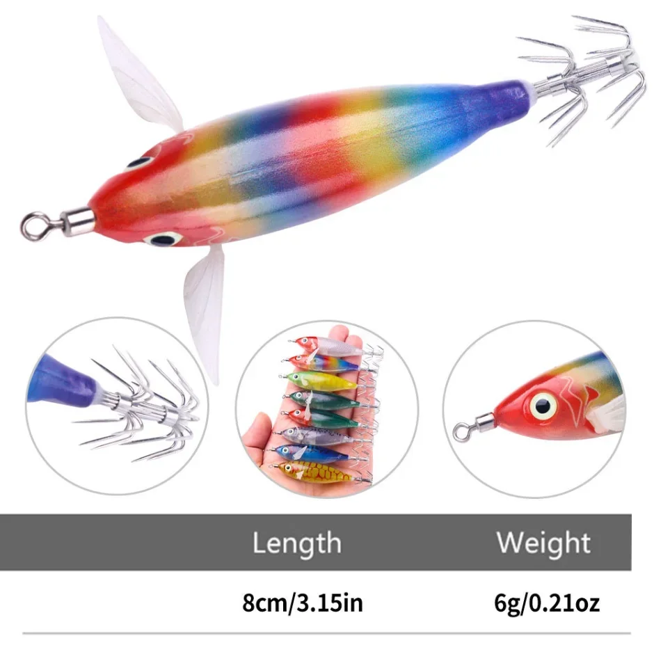 1pcs 8cm 6g Vissen Lokken Lichtgevende Hout Garnalen Inktvis Haak Fluorescerend Visaas Lokken Mock Raket Inktvis Haak Accessoires