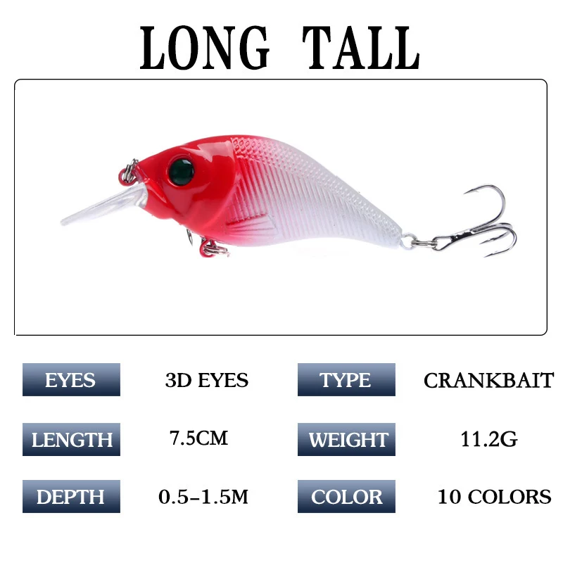 1Pcs Wobblers Kwaliteit Crankbait Simulatie Vissen Lokken 7.5Cm 11.2G Jerkbait Drijvende Harde Aas Bas Karper Pesca Vissen visgerei
