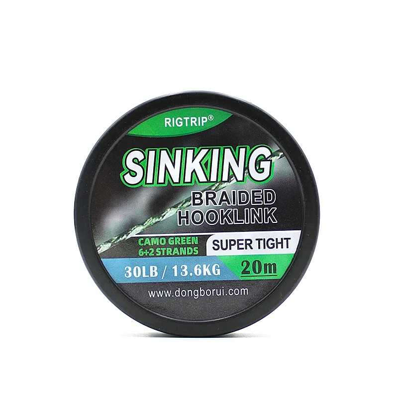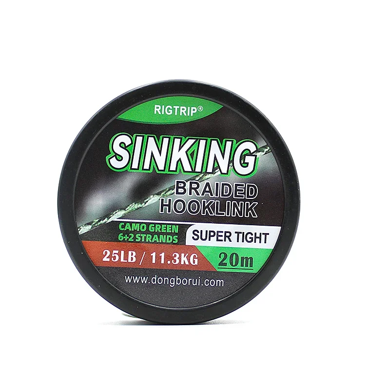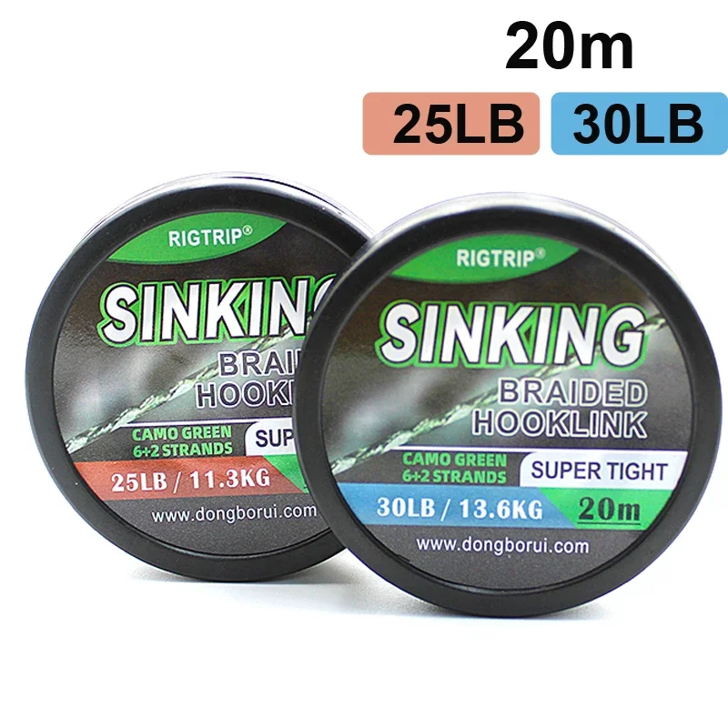 Línea de gancho para pesca de carpa de 20m, aparejo de carpa verde camuflaje, aparejo de cabello, línea trenzada, tejido súper apretado, accesorios de aparejos de 6 + 2 hebras