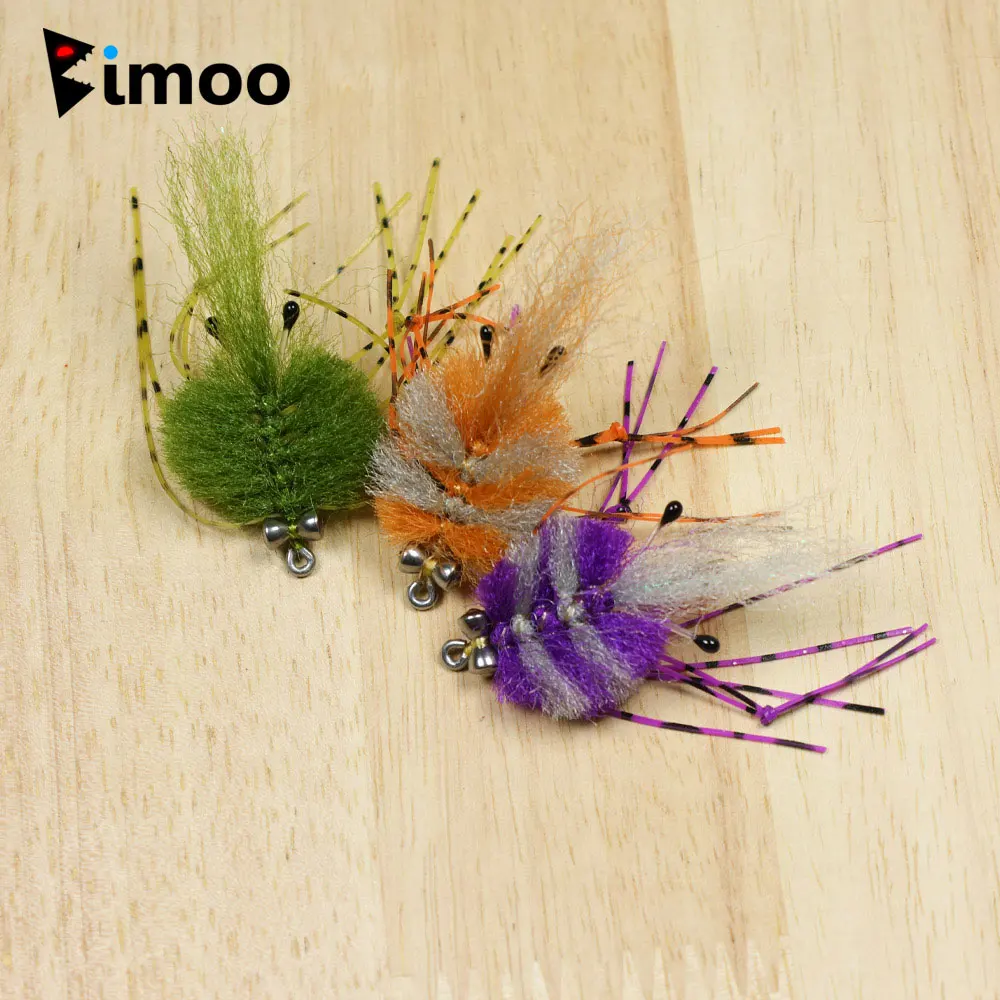 Bimoo 2 ~ 3 uds mancuerna ojos cangrejo mosca 2/0 gancho para mosca de acero inoxidable cebo para cangrejo moscas de agua salada pez hueso pez rojo señuelo de pesca para lubina a rayas
