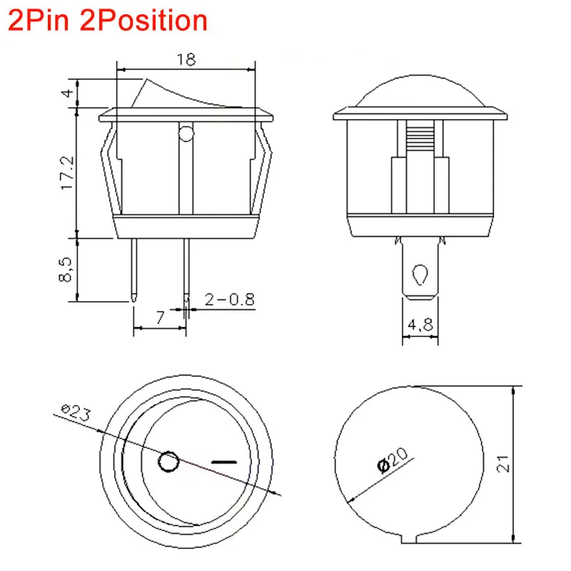 Interruptor basculante redondo KCD1 2/3Pin de 5 piezas 23mm ON-OFF-ON 2/3 posiciones 6A/250VAC 10A/125VAC LED interruptor de botón de coche con luz
