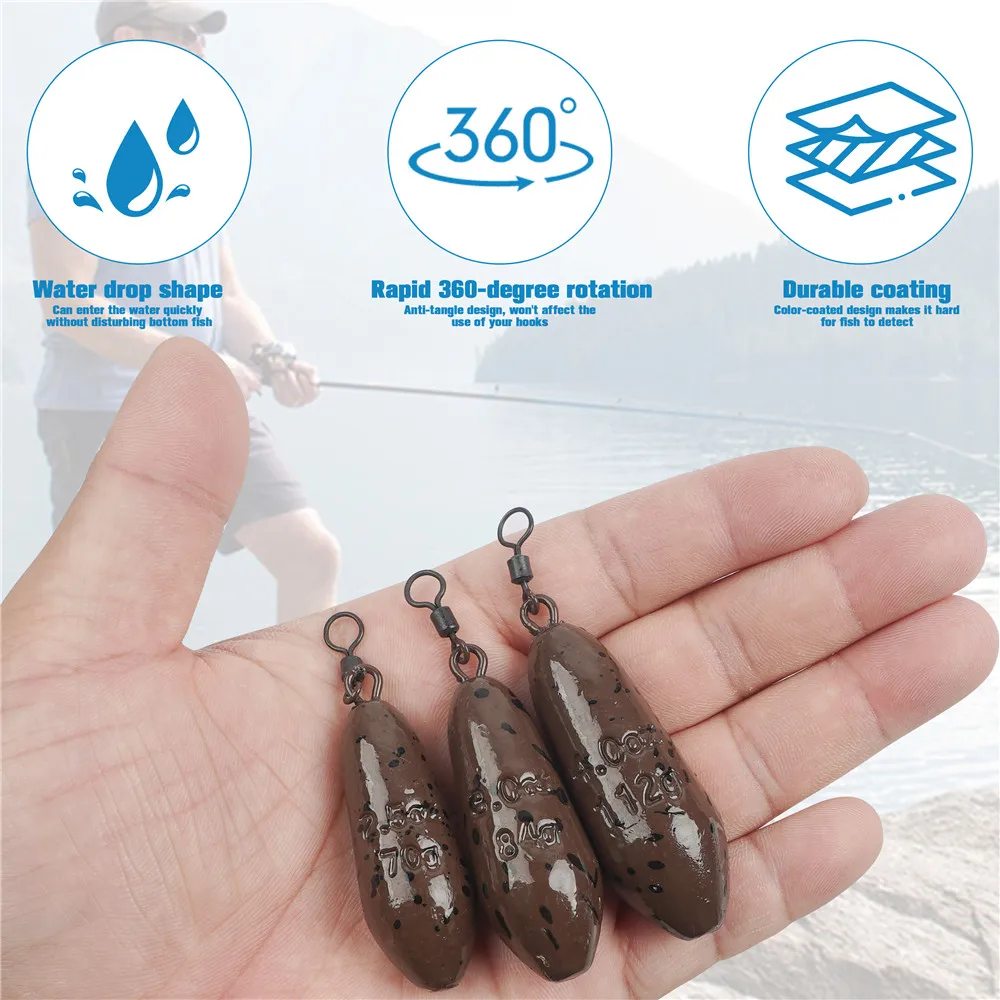 1.Forma aerodinámica de gota de lluvia para una menor resistencia en el aire y el agua.El plomo de pesas de pesca sería adecuado para sus diversos jigs o combinaría para diversos aparejos.Puede lanzar más gracias a su peso suficiente y su forma aerodinámica para reducir la resistencia del aire.