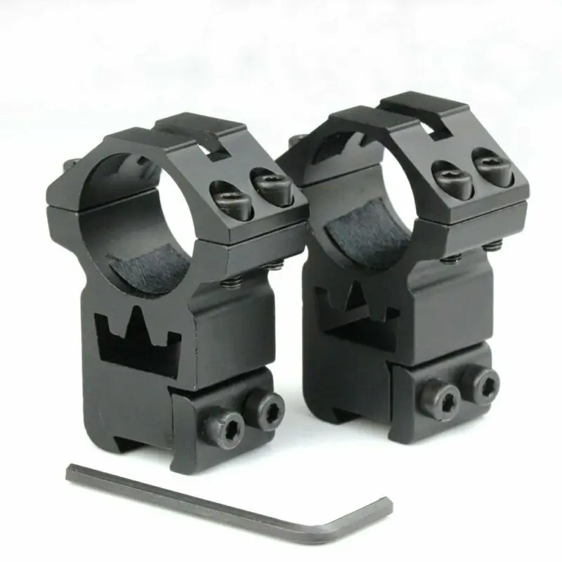 Estos son nuevos anillos de alcance de alto perfil. Estos anillos de alcance se ajustan a soportes de riel de cola de milano de 11mm. Los anillos son para un soporte sólido. Los anillos de alcance son para tubo de alcance estándar de 25,4mm. Estos son anillos de alcance de muy alta calidad para su rifle, y hacen una excelente actualización. Características: Material: aluminio de alta calidad Tipo: perfil alto Color: Negro Diámetro del anillo: 25,4mm Tamaño: como en la imagen. Incluido en el paquete: 2 x montura de alcance de anillo
