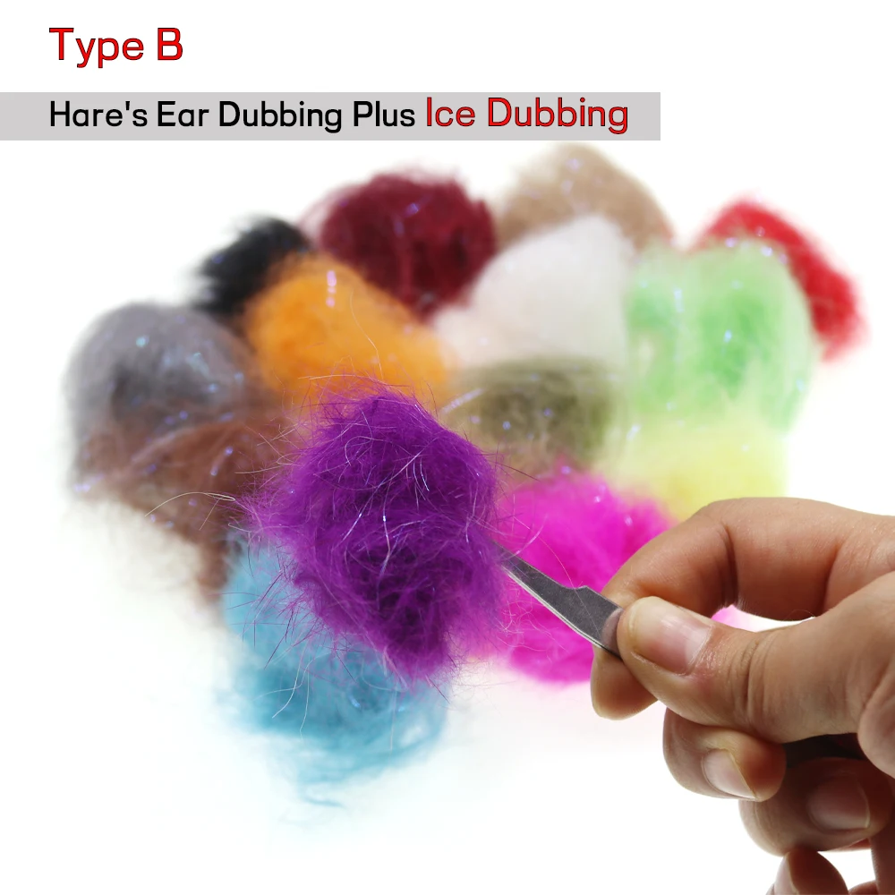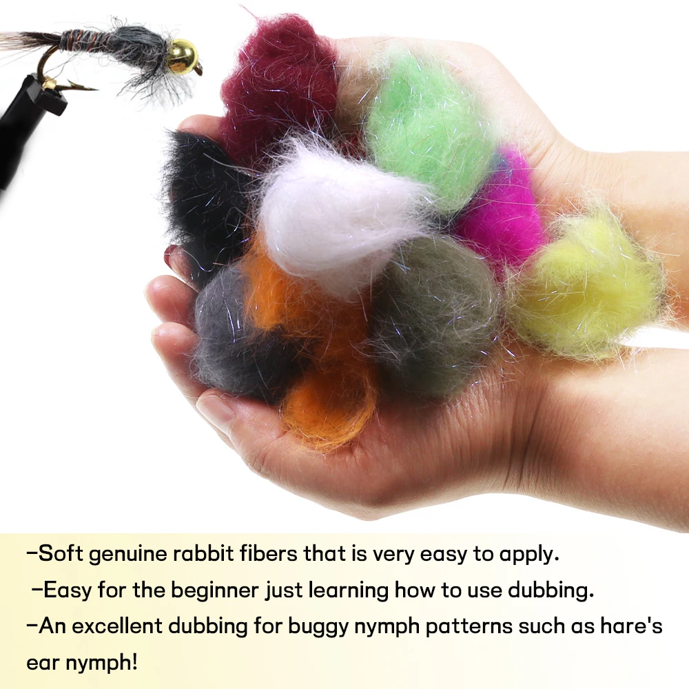 2 bolsas 15 colores volante atado conejo Dubbing Hare oreja cuerpo Dub Fiber Plus Flash hielo Dub Caddis ninfa Scud Caddis Material para atado de moscas
