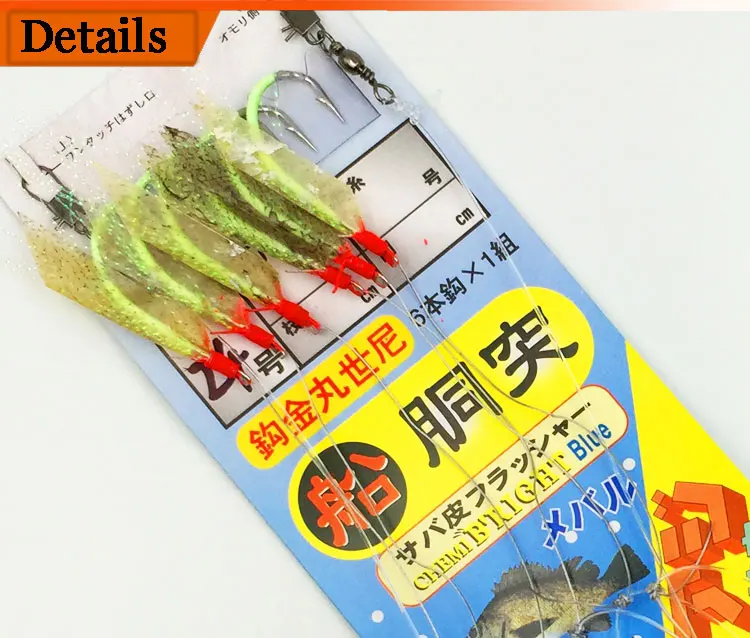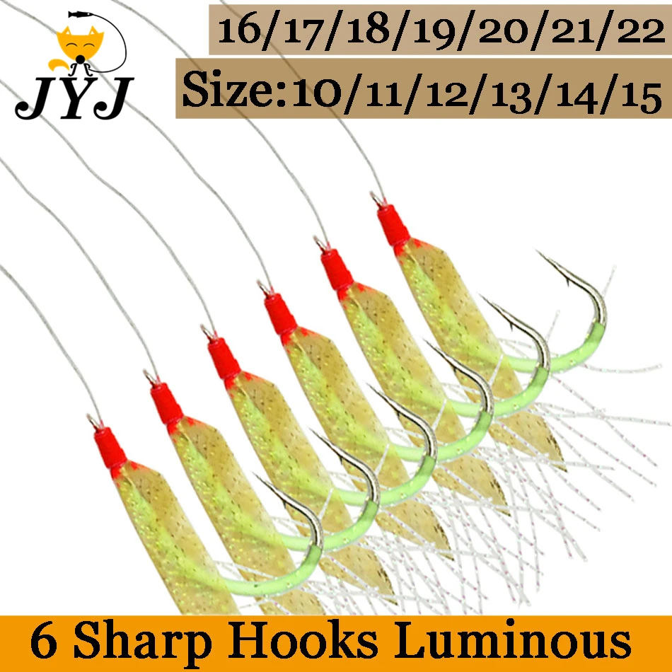 2 bolsas de anzuelos de 10/11/12/13/14/15/16/17/18/19/20/21/22 piel de pescado real, señuelo luminoso con carpas para pesca de caballa