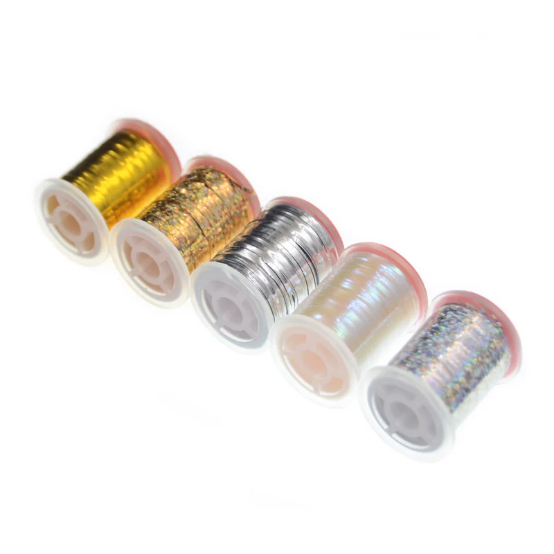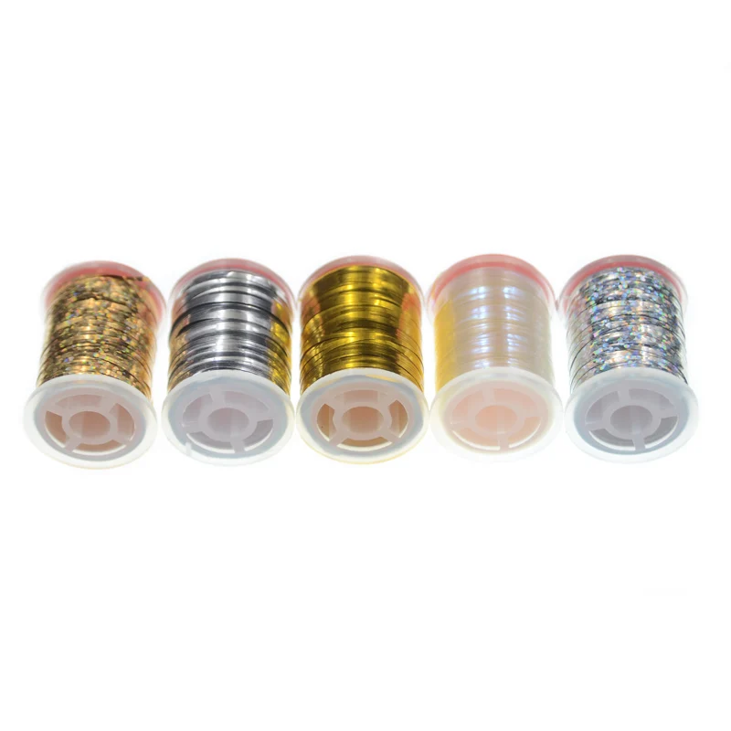 2 carretes holográficos Mylar oropel material para atar moscas para muddler Minnow Midges 90 metros/carretes oropel plano envoltura moscas cuerpos