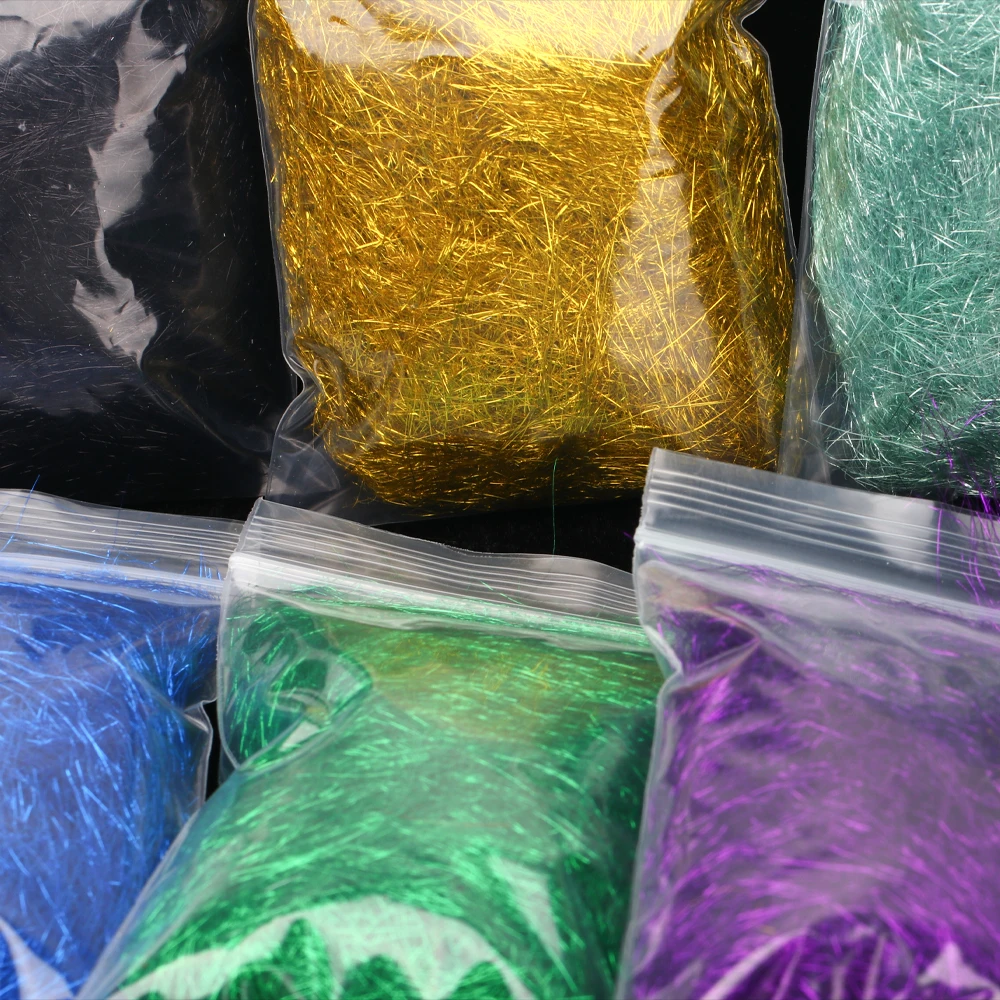 Wifreo 2 paquetes de fibra sintética de doblaje de hielo Flash suave ala de hielo Material para atar moscas para camarones cebo pez serpentina pececillo moscas señuelo de trucha