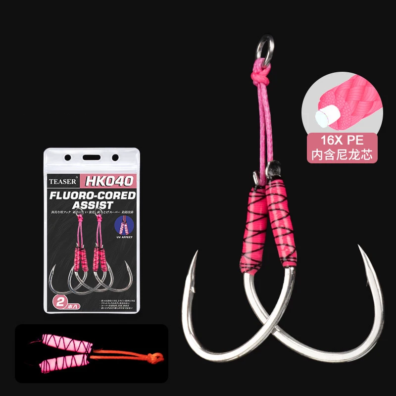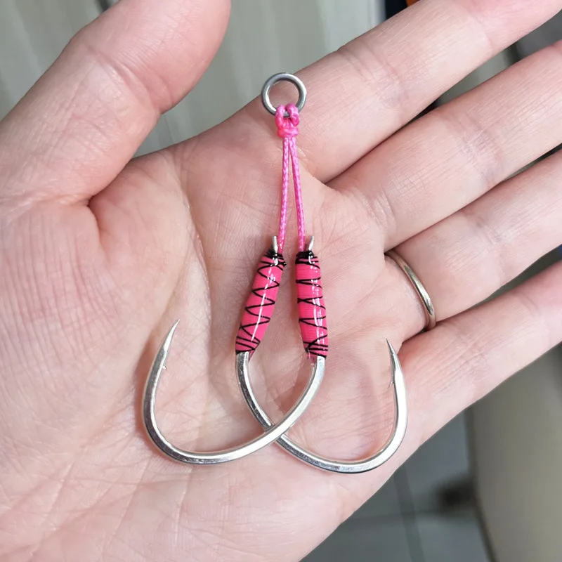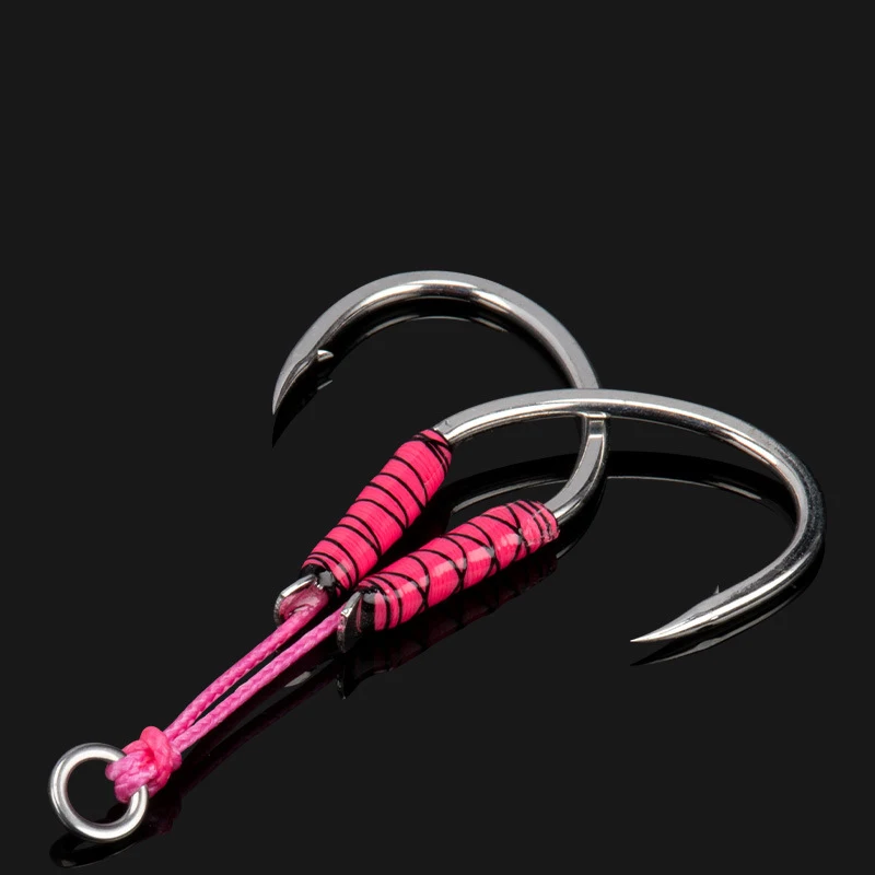 2 par/bolsa plantilla UV anzuelos de asistencia de doble púas anzuelos de señuelo accesorios de señuelo de pesca de acero alto en carbono anzuelos de Jigging lento pesca