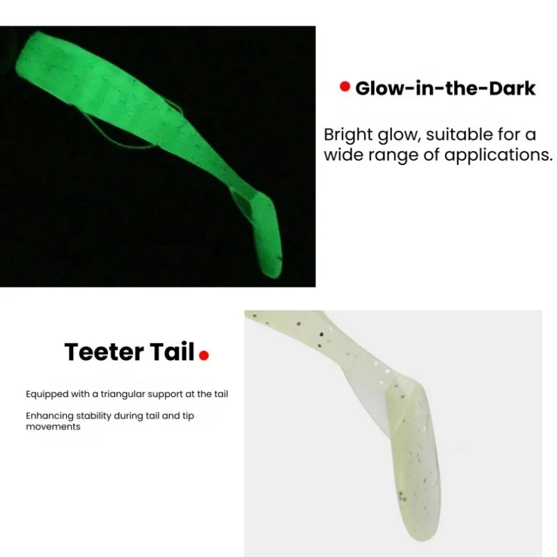 2. Soft Silicone Material: Flexible body for natural movement underwater.