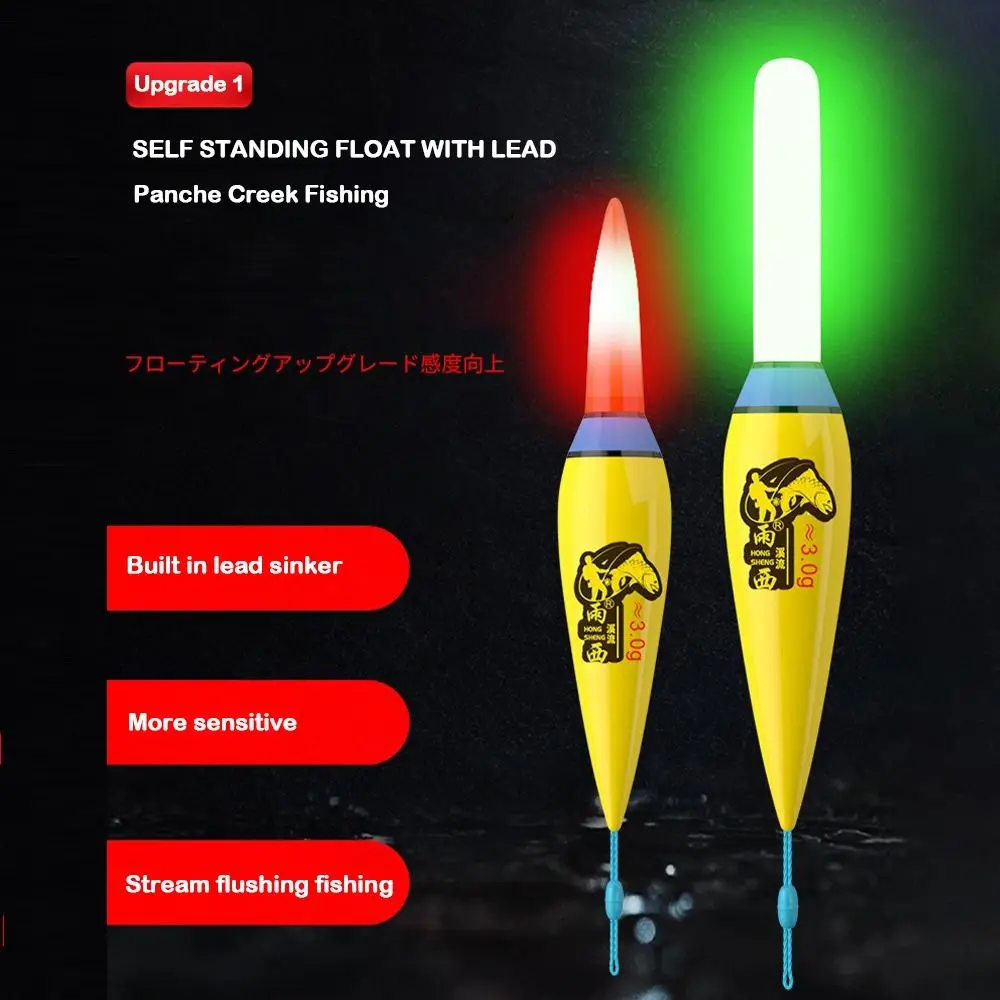 Name: Crucian carp float, shallow water float, ice fishing float Quantity: 2Pc Packaging: We use double-layer bubble film to wrap, the packaged goods arrive safely Product Demension: see details from the pictures. Size:As picture show Length:7cm(1.46in) Material: Nano Style:Red Light Package Included 2pcs Fishing Float(No CR311 Battery)