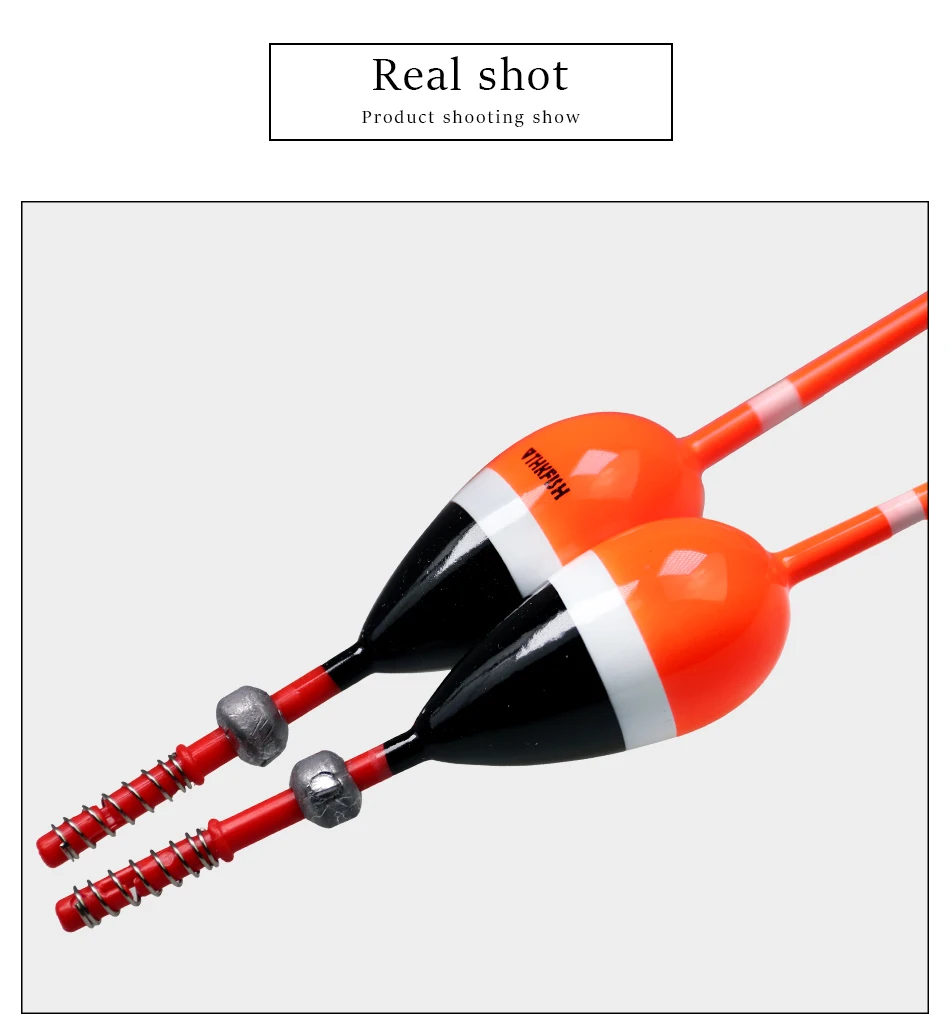 3. Los Bobbers de resorte son pintura fluorescente de alta visibilidad. Ayuda al pescador a reconocer visualmente la mordedura de un pez. Los flotadores de pesca brillantes hacen que sea más fácil ver cuando los peces muerden el cebo.