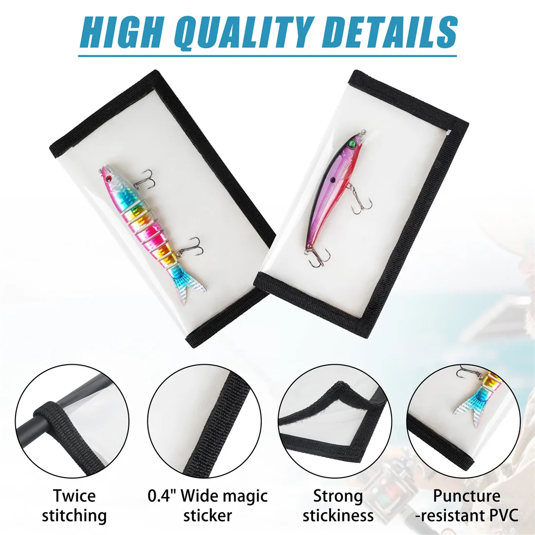 1. 【Construcción resistente a perforaciones】 Hecho de material de PVC más grueso, hace que sea duradero para proteger el gancho afilado. Es un paquete transparente, es fácil tomar el señuelo de pesca que necesita.