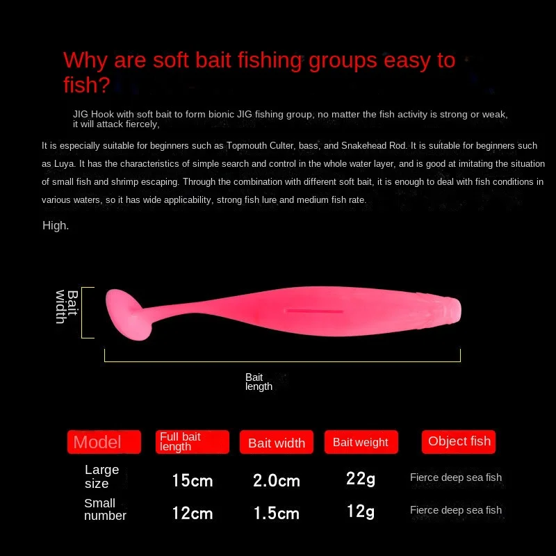 (2) La cola tiene un diseño en forma de T, cuando el cebo se resiste, puede balancearse fácilmente, imitando al pez pequeño herido y atrayendo la atención del pez grande.