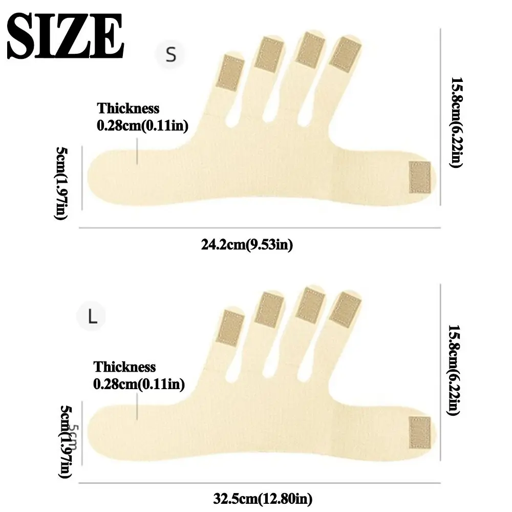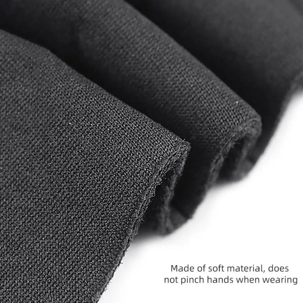 El paquete incluye: 2 unids/par de protectores de dedos Costuras densas con material compuesto (nylon, spandex y neopreno), transpirable y excelente flexibilidad.