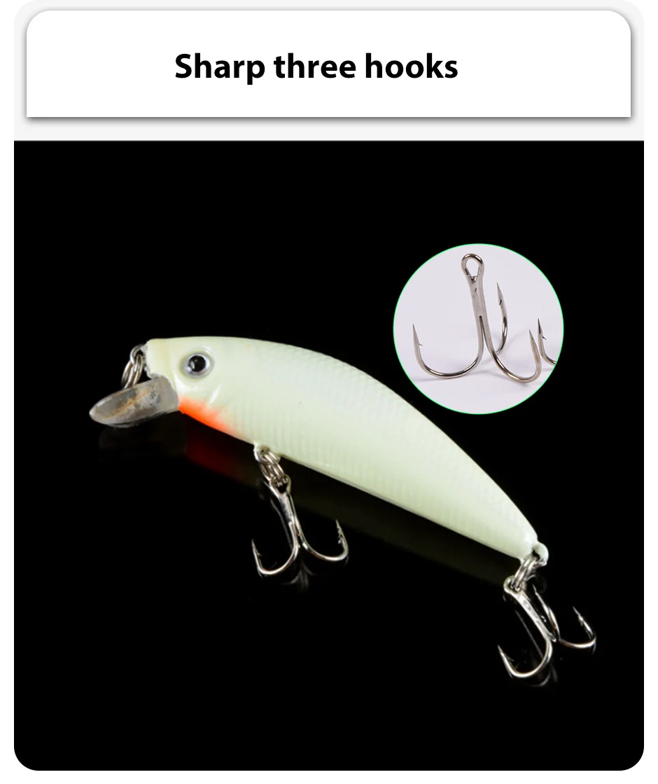 • Ganchos agudos :Los anzuelos triples en este señuelo de pesca aseguran que su cebo permanezca firmemente unido a los peces, aumentando sus posibilidades de una captura exitosa.