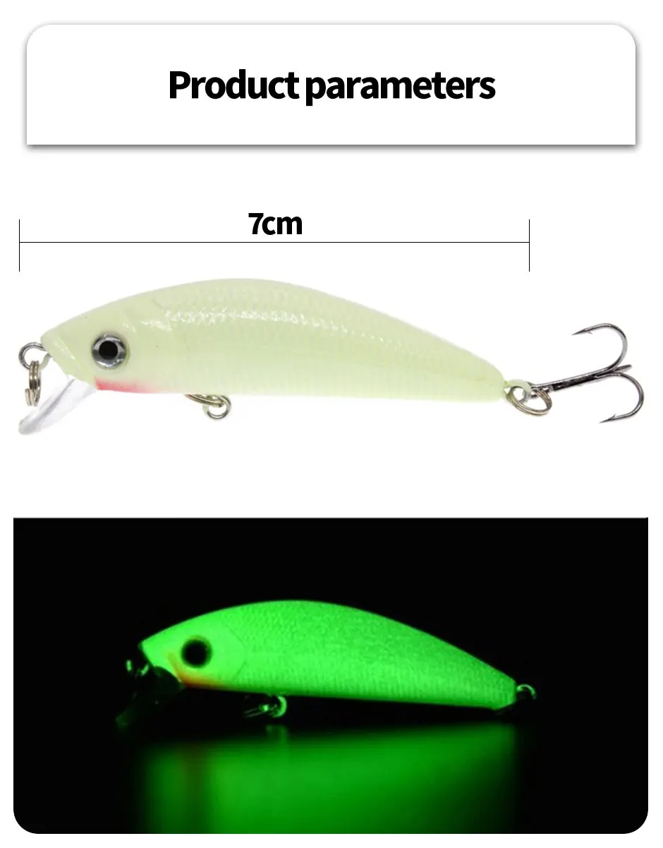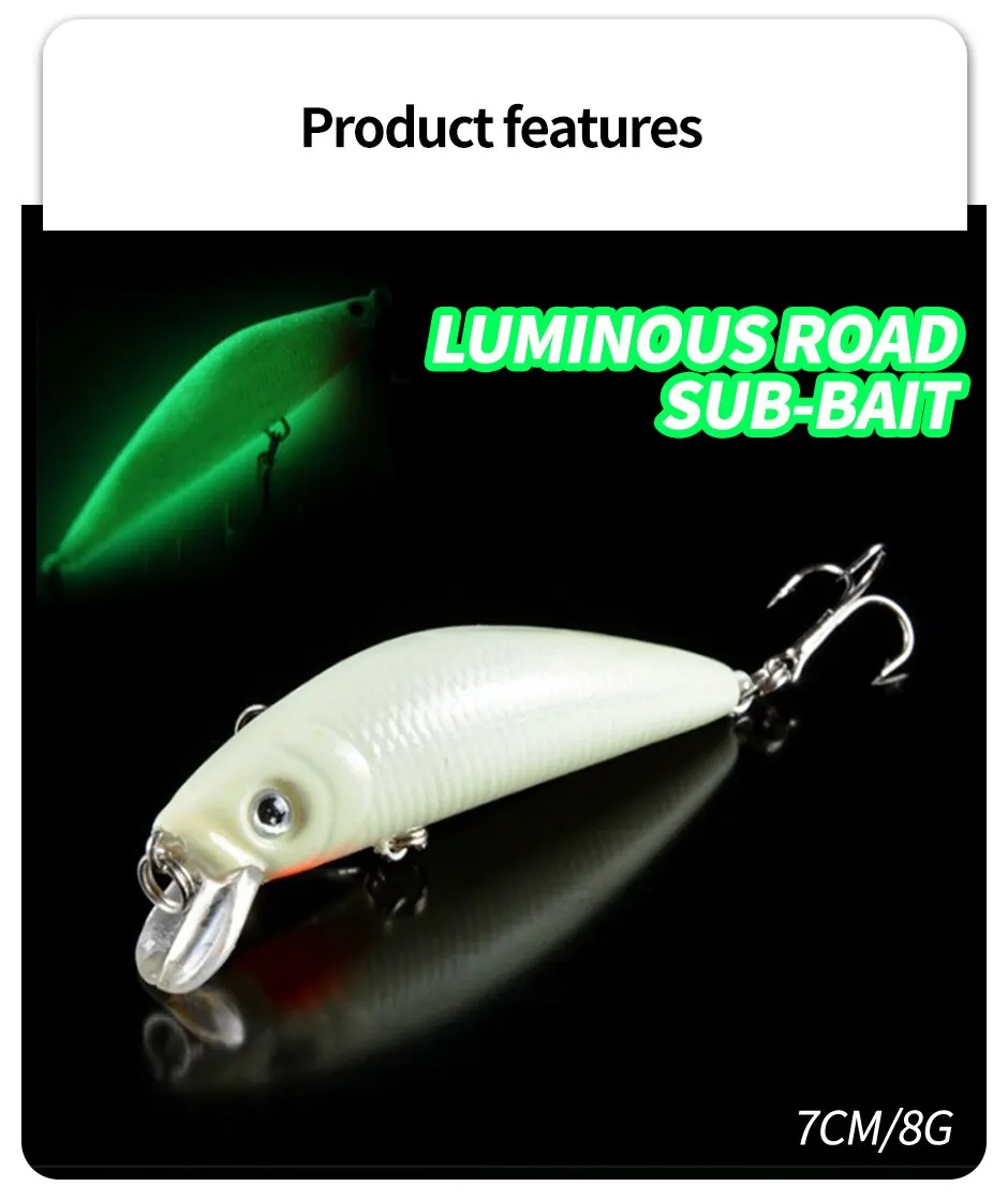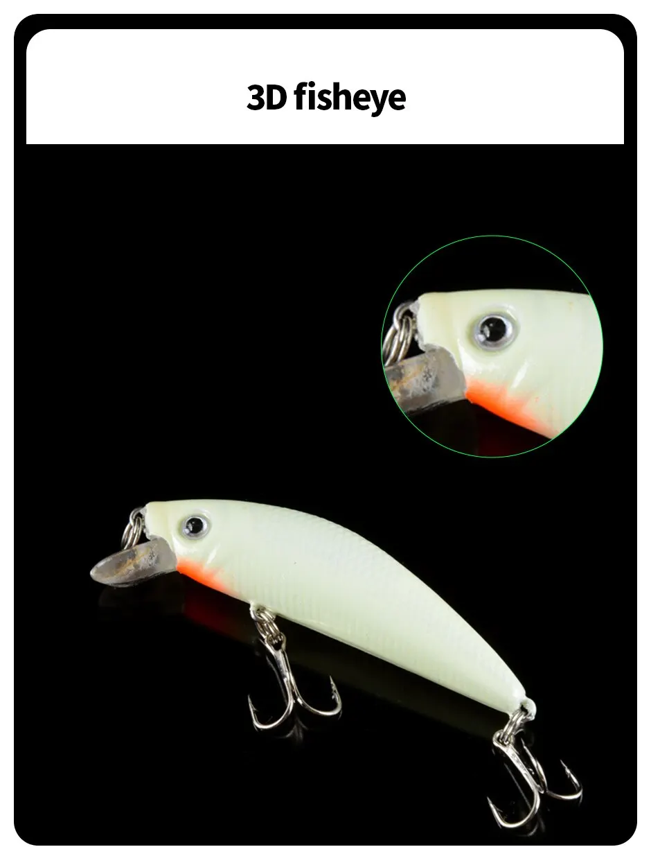 • Diseño luminoso 3D :El diseño luminoso 3D de este señuelo de pesca atrae a los peces en condiciones de poca luz, lo que aumenta las posibilidades de atrapar más peces.