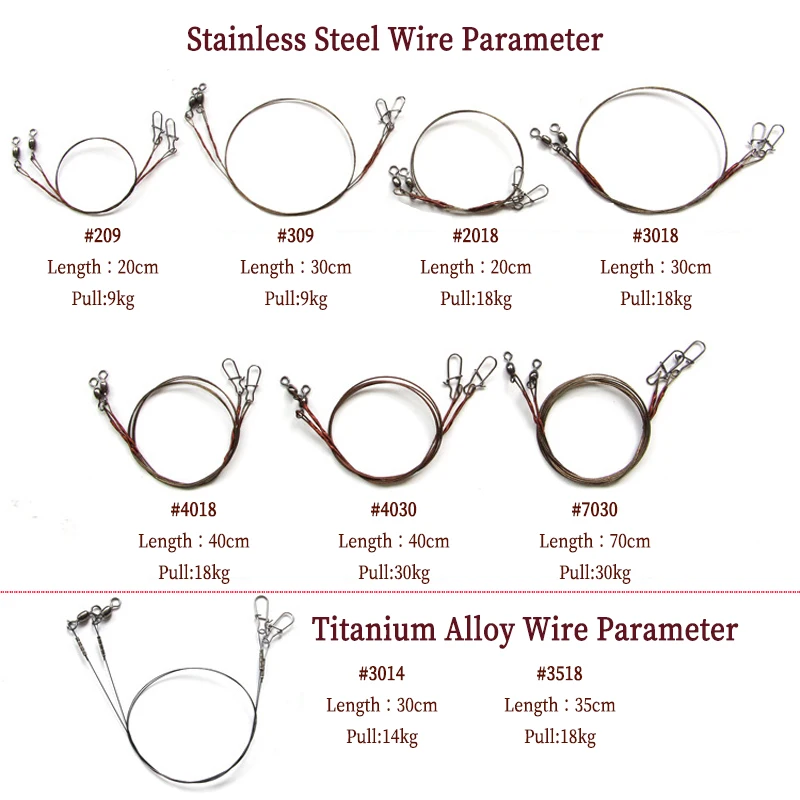 3.Cuando necesita resistencia al desgaste, los cables de acero inoxidable son perfectos para montar varios tipos de señuelos o señuelos.