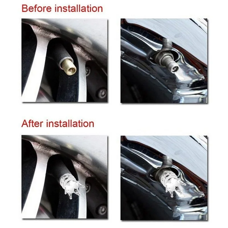 Introducir: Universal, se adapta a cualquier automóvil, camión, bicicleta, motocicleta o vehículo todo terreno con un vástago de válvula estándar. No se requieren herramientas, fácil instalación Se vende como un juego de 2 tapas de válvula en un caso Tapas de ventilación de aluminio