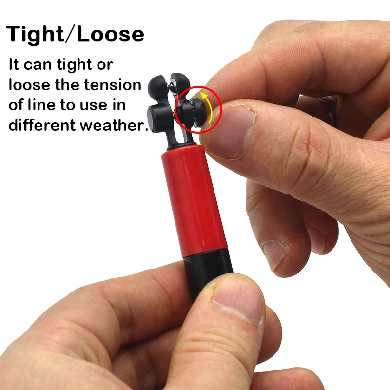 -Clip de línea ajustable para apretar o aflojar la tensión de la línea principal.