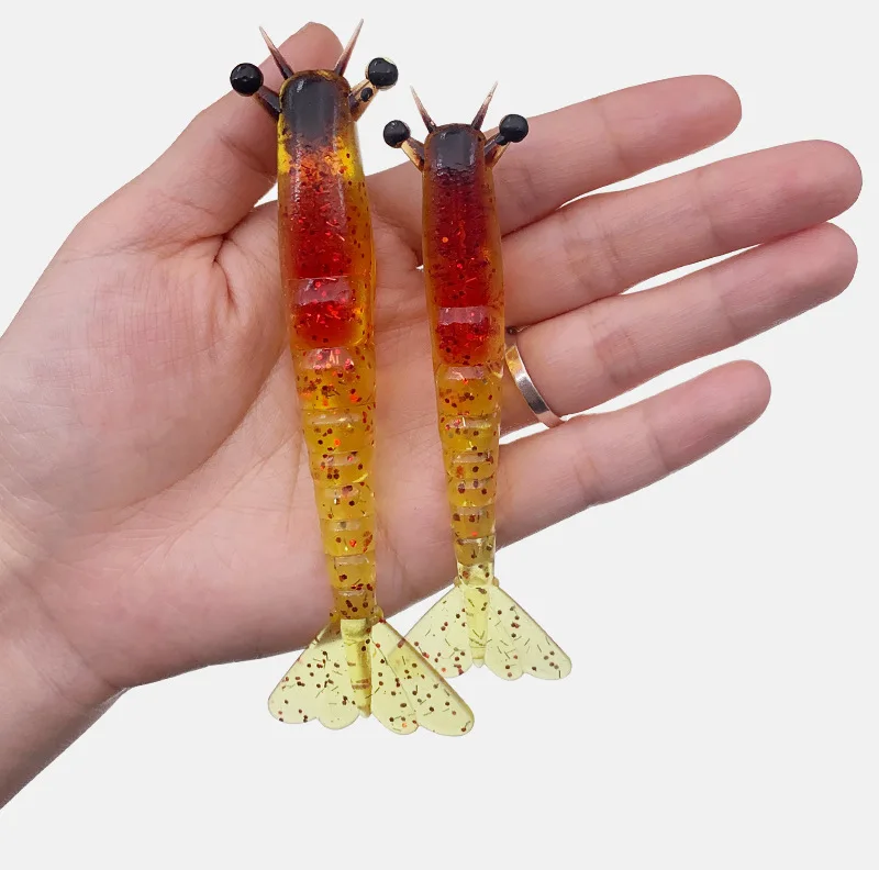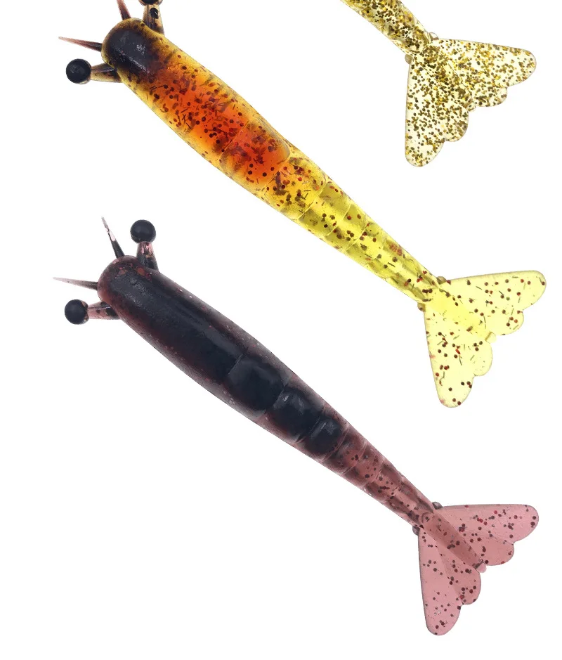 2 unids/caja Material suave cebo de camarones artificiales 9,5 cm/11,5 cm tamaño PVC señuelo de pesca cebo 6g/10g peso cebo de camarones suaves agua salada