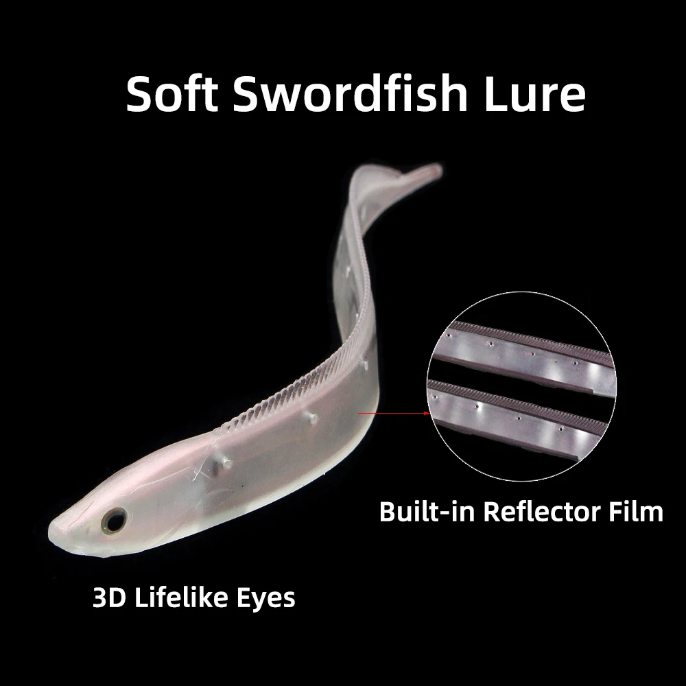 2 unids/pack 15cm pesca en agua salada pez espada señuelo suave semitransparente Reflector incorporado barco pesca señuelo biónico cebo