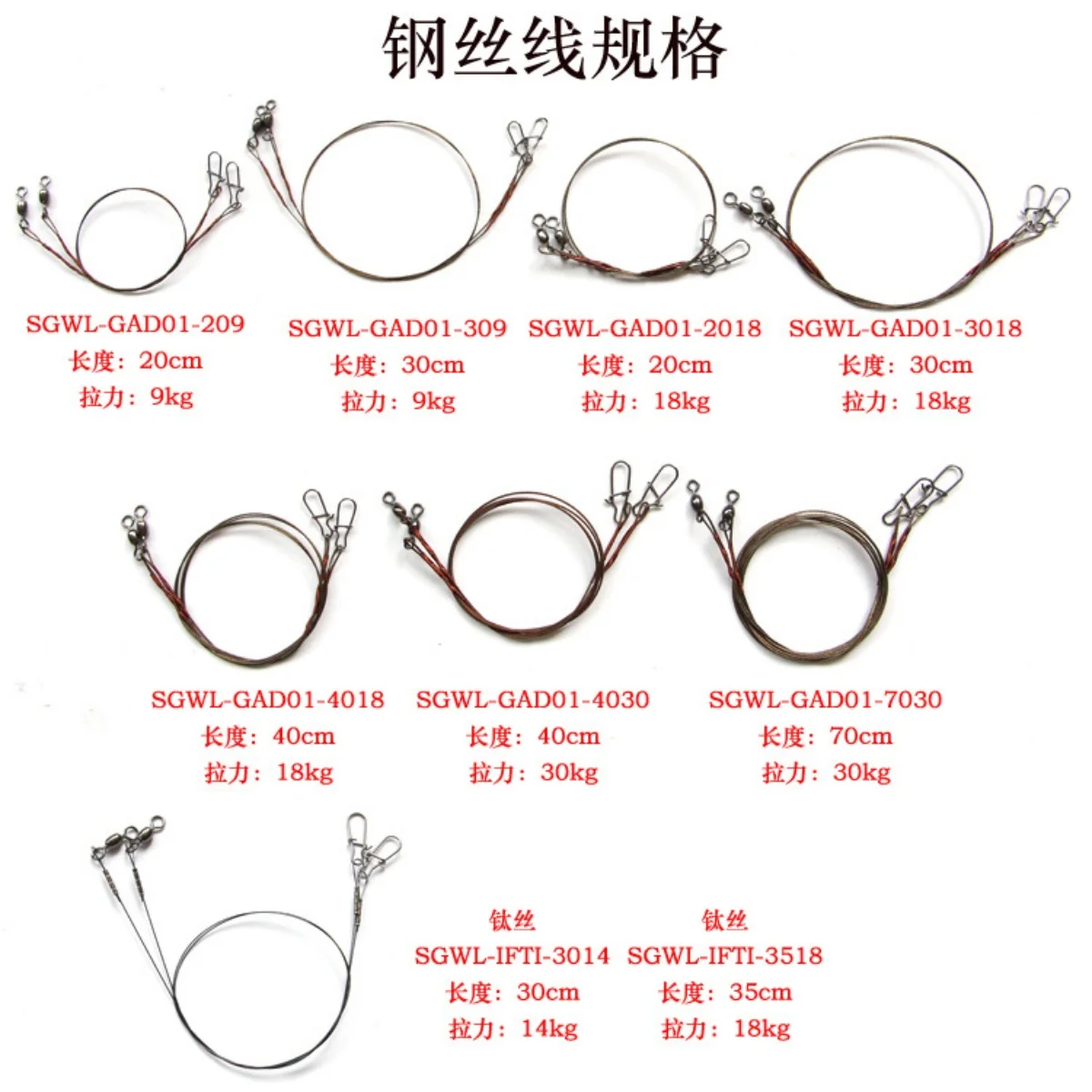 2 unids/set hilo de pescar de acero 20/30/40/70cm fuerte soporte de alambre de acero líder correa de pesca accesorio de pesca al aire libre portátil