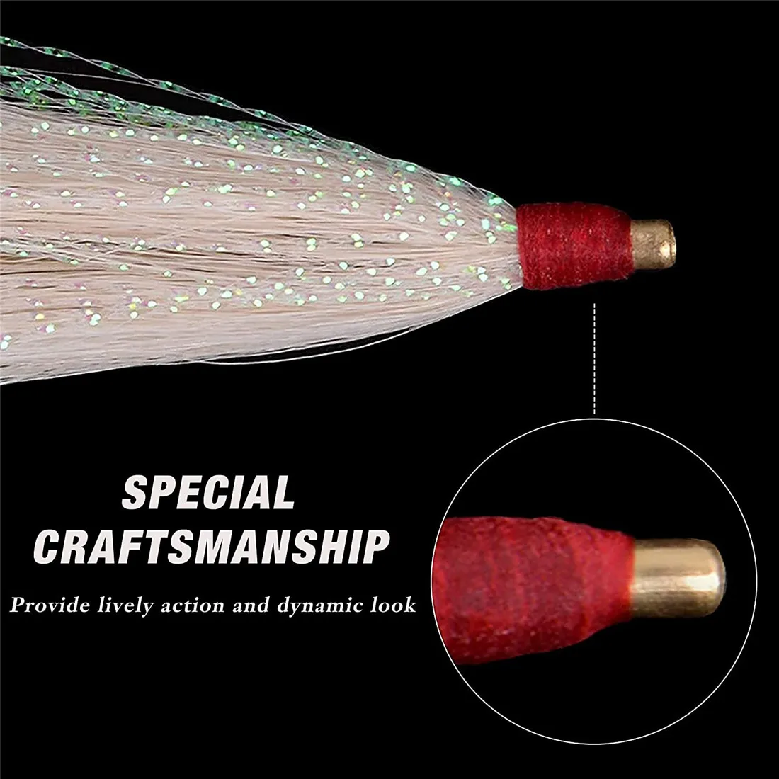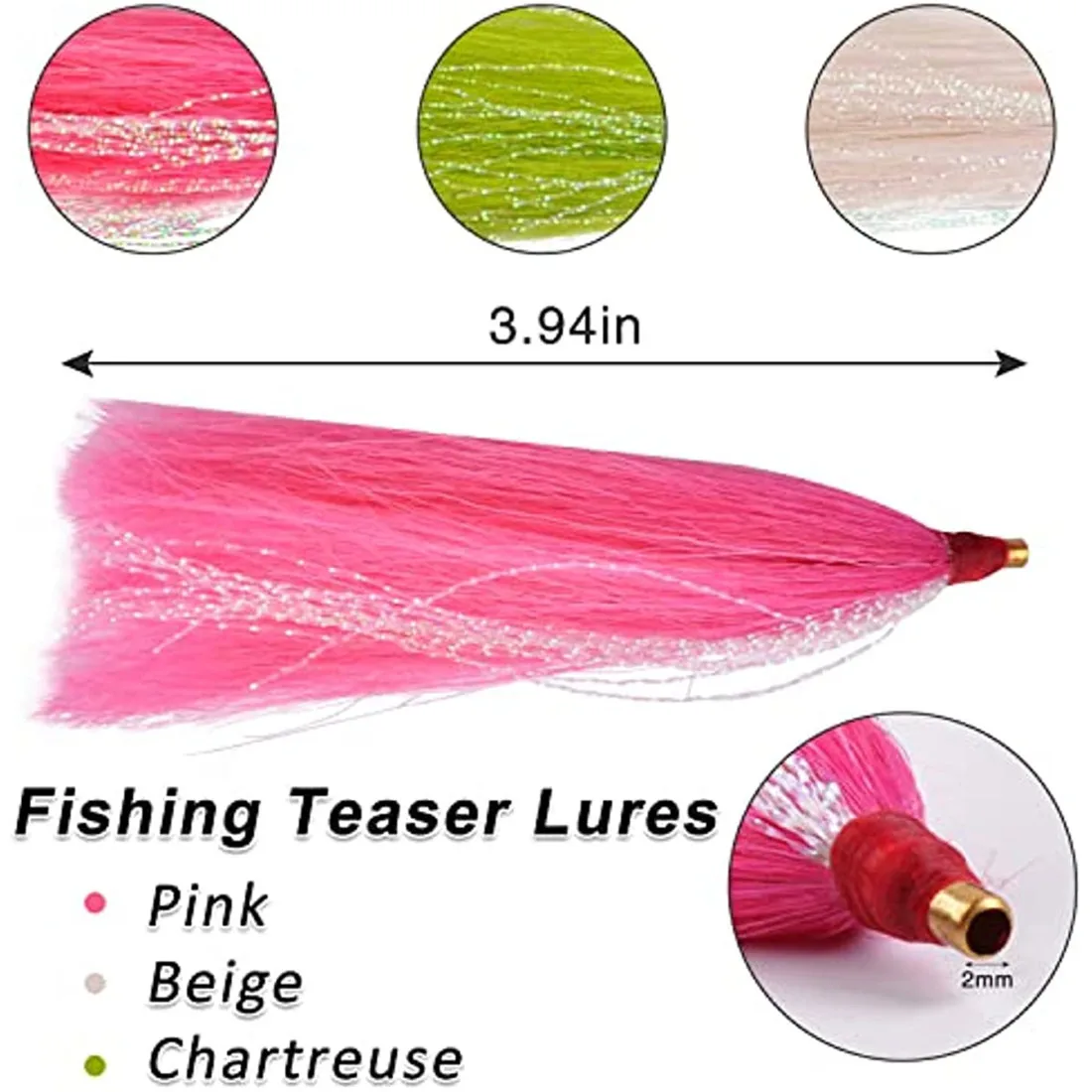3.Los teasers de agua salada de Bucktail son ideales para la pesca costera, en alta mar, en roca y en surf. Ideal para hacer aparejos de alineación, aparejos de cebo o aparejos de lubina para capturar alineadores, stripers y truchas marinas.