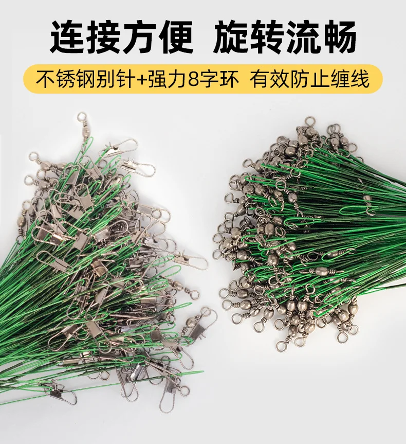 20/50/100/200 Uds sedal de pesca de acero antimordida hebilla giratoria alambre de acero plomo fuerte tensión pesca alambre accesorios de pesca