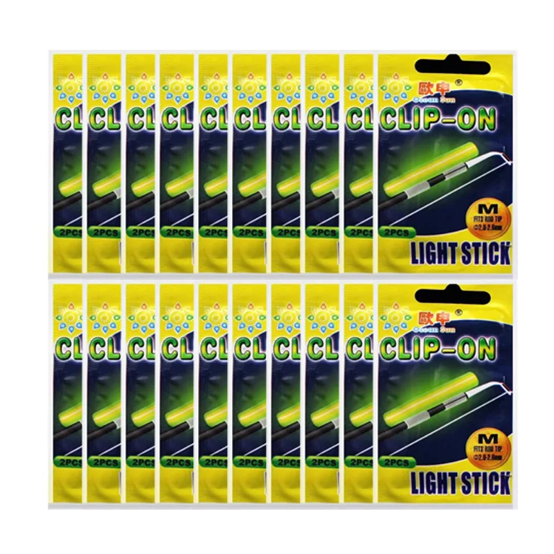 20 paquetes (40 uds) SS S M L XL XXL pesca nocturna barra de luz fluorescente luminosa Clip a presión en punta de caña de pescar barra luminosa J555
