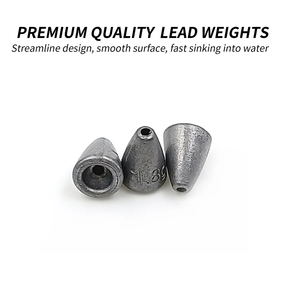 PESOS DE PLOMO DE CALIDAD PREMIUM: hechos de materiales de alta calidad y el recuento es preciso, el acabado del peso de pesca es suave, el molde de peso es agradable, pulido con superficie desbarbada. Sin flash moldeado, muy uniforme en longitud y sin huecos en la correa.