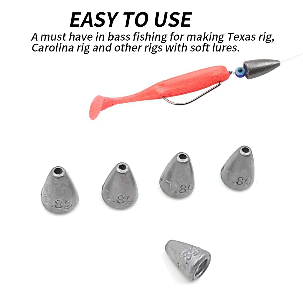 FÁCIL DE USAR: buenos pesos con un agujero para atar fácilmente. El peso de la bala de pesca puede ser ampliamente utilizado para componer diferentes tipos de jigs de pesca. Estos plomos de pesas de agua salada funcionarían perfectamente en hundimiento con menos resistencia, caída al agua de tiro rápido que se hunde en el área de uso del agua.