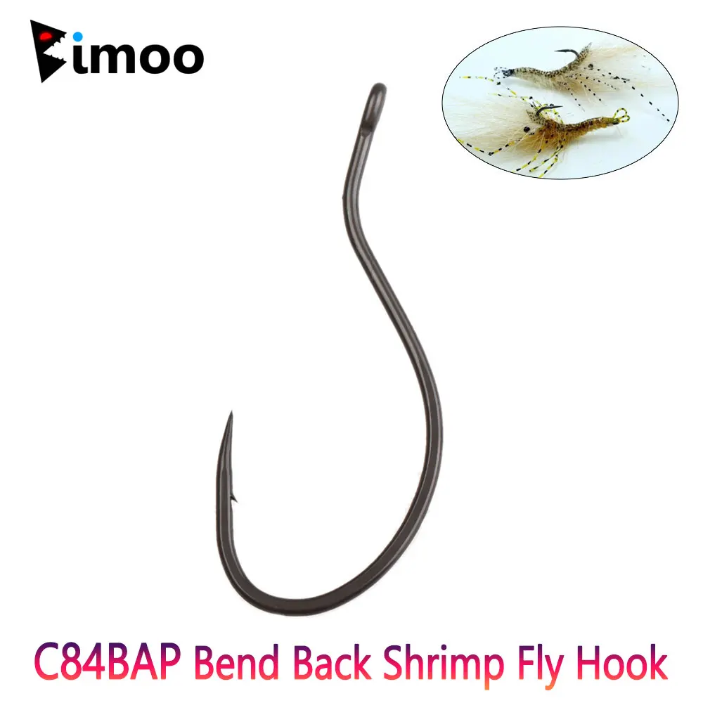 Bimoo 20 piezas#4 ~ 2/0 C84BAP 2X anzuelo de mosca de camarón con espalda curva fuerte para moscas de camarón grandes serpentinas con espalda curvada ninfas señuelos de pesca de mar