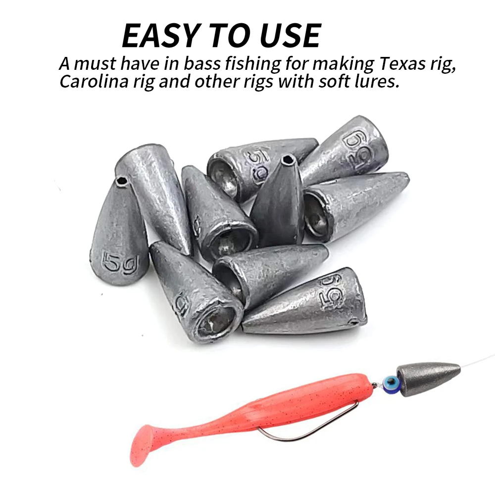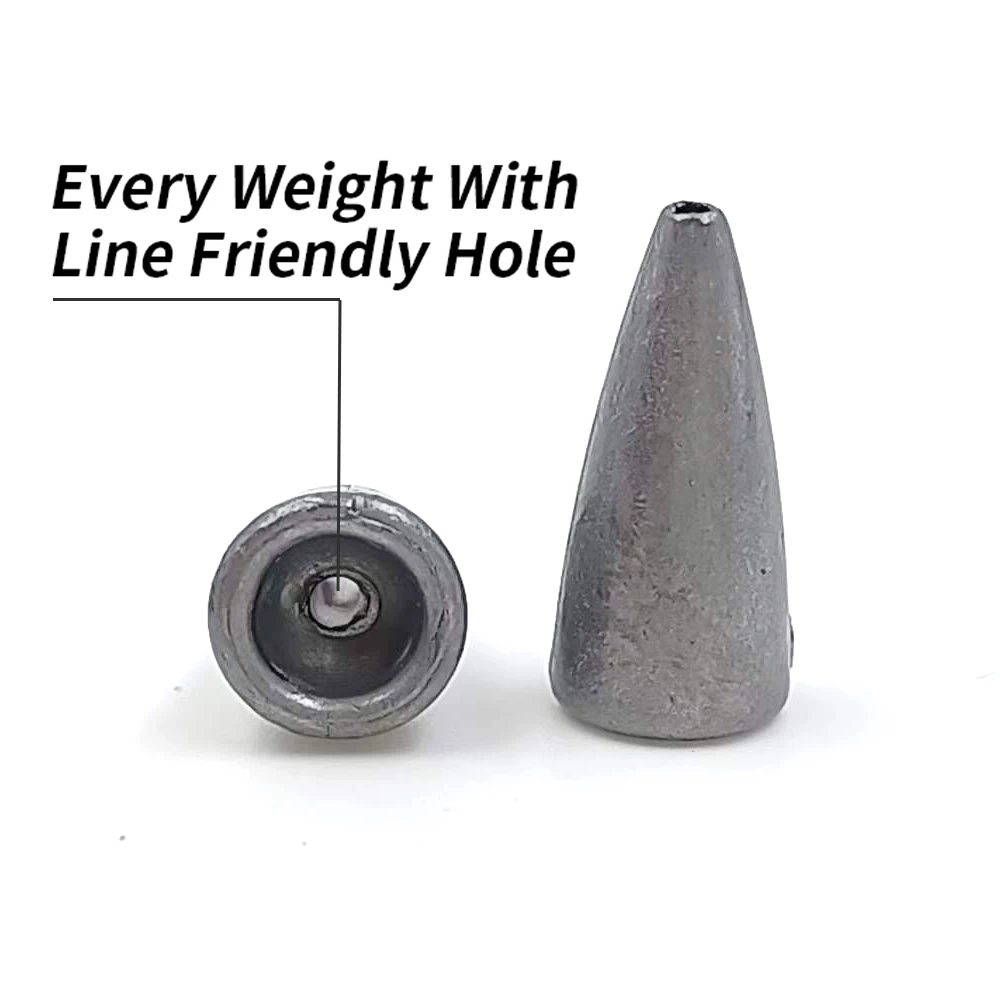 FÁCIL DE USAR: Bonitos pesos con un orificio para atar fácilmente. El peso de pesca de bala se puede utilizar ampliamente para componer diferentes tipos de plantillas de pesca. Estas plomadas con pesas de agua salada funcionarían perfectamente al hundirse con menos resistencia, caídas al agua, disparos rápidos hundidos en el área de propósito del agua.