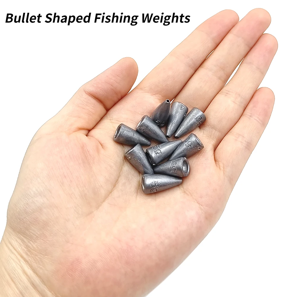 SINKERS EN forma de bala: Los pesos corporales en forma de bala se pueden usar para pescar alrededor de las rocas, no se cuelgan tanto como los pesos de lágrima o de caída redonda.Los pesos tienen forma y tamaño perfectos para su uso en agua dulce.No es fácil engancharse en el fondo del lago o río.Si está pescando en lugares donde es propenso a perder aparejos debido a los enganches, estas plomos son el camino a seguir.