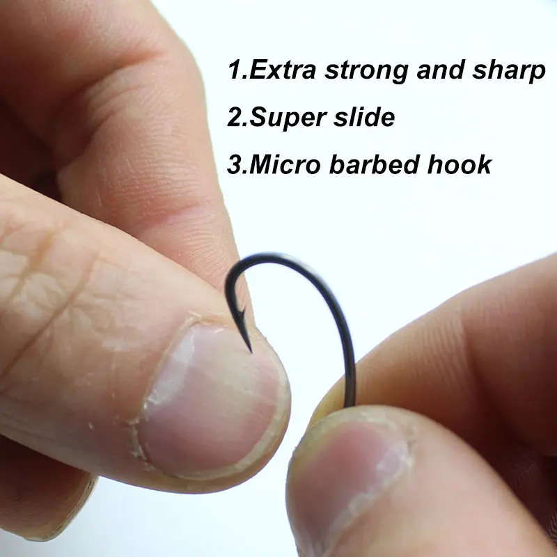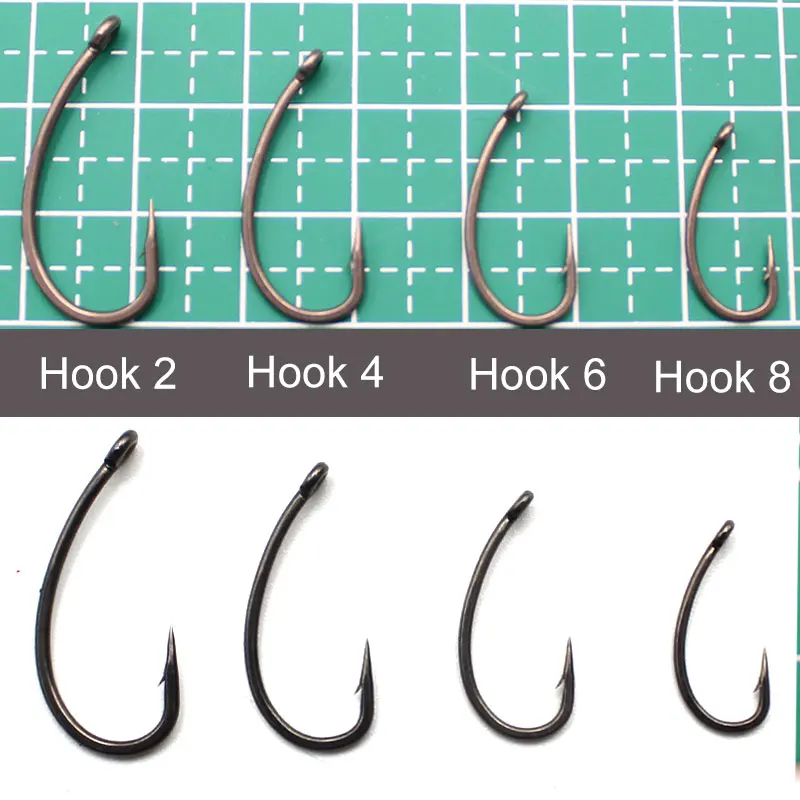 Anzuelos fuertes y afilados para la pesca de carpas de gran tamaño.
