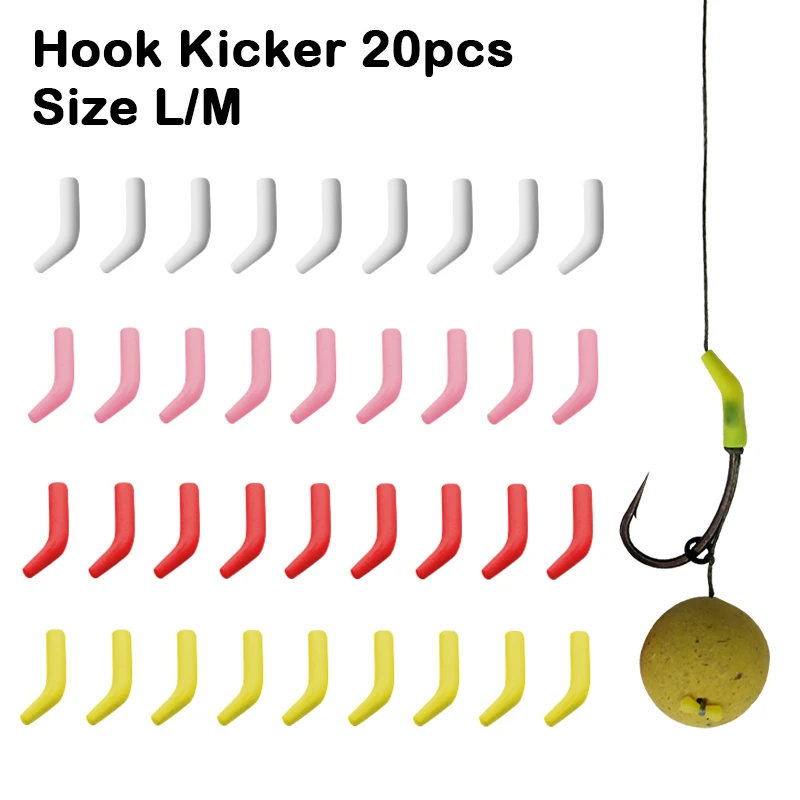 Los Kickers están hechos de una goma robusta que se deslizará fácilmente sobre el ojo del anzuelo y se mantendrá en su lugar, y cuando se engancha un pez se endereza pero luego volverá a su forma original.