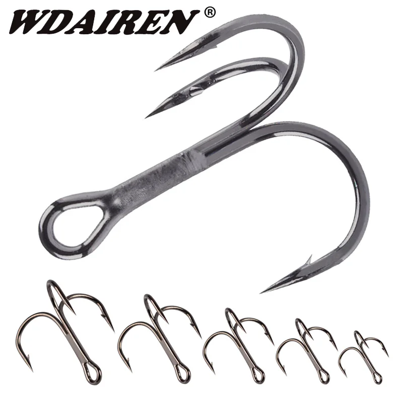 Anzuelo Triple volcado de 20 piezas, anzuelo negro de acero al carbono alto 2/4/6/8/10/12 # para señuelo, anzuelo Triple, accesorios para aparejos de pesca