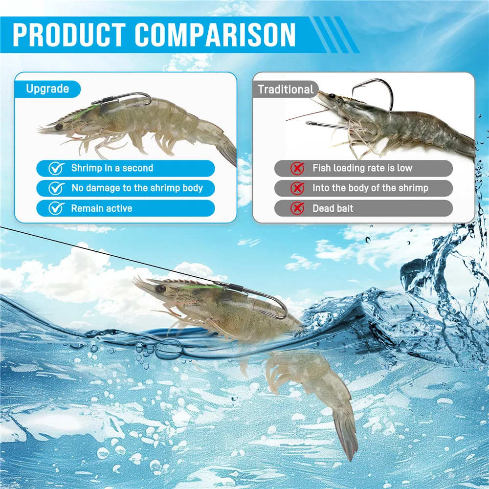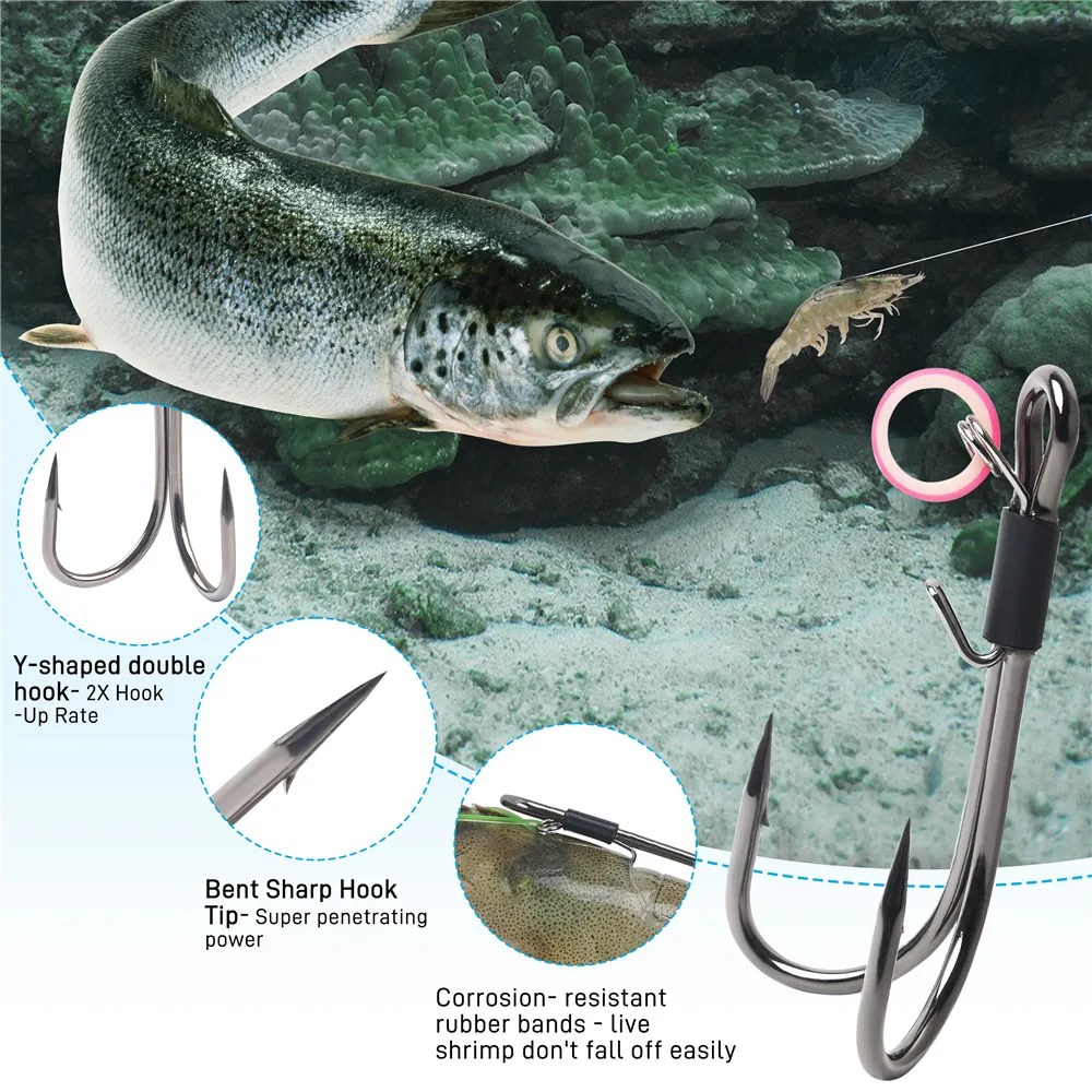 2.Diseñados para la pesca de camarones vivos y cebos. Especialmente diseñados para la pesca de camarones vivos y cebos, estos anzuelos tienen puntas afiladas que sujetan de forma segura el cebo en su lugar, evitando que se resbale y mejorando sus posibilidades de aterrizar peces.