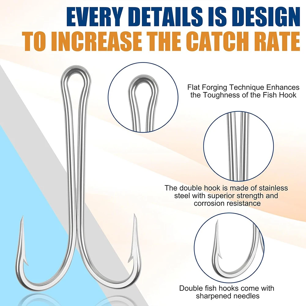 2. El anzuelo de pesca doble es ideal para una pesca de gran caza. Adecuado para anzuelos de pesca con plantilla de agua dulce y salada.