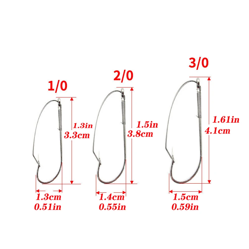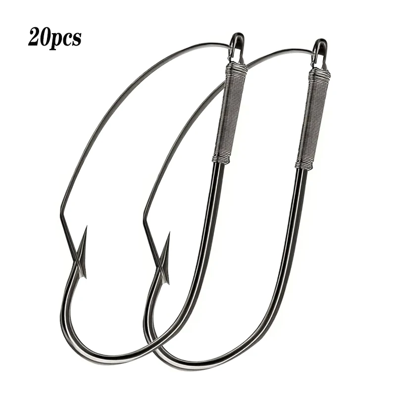 20 piezas anzuelos de pesca sin malezas: 1/0 2/0 3/0 de acero al carbono debajo del anzuelo cebo de anzuelo de gusano único-accesorio de pesca perfecto