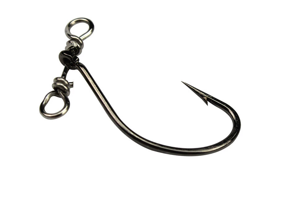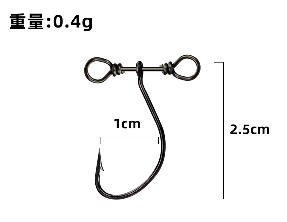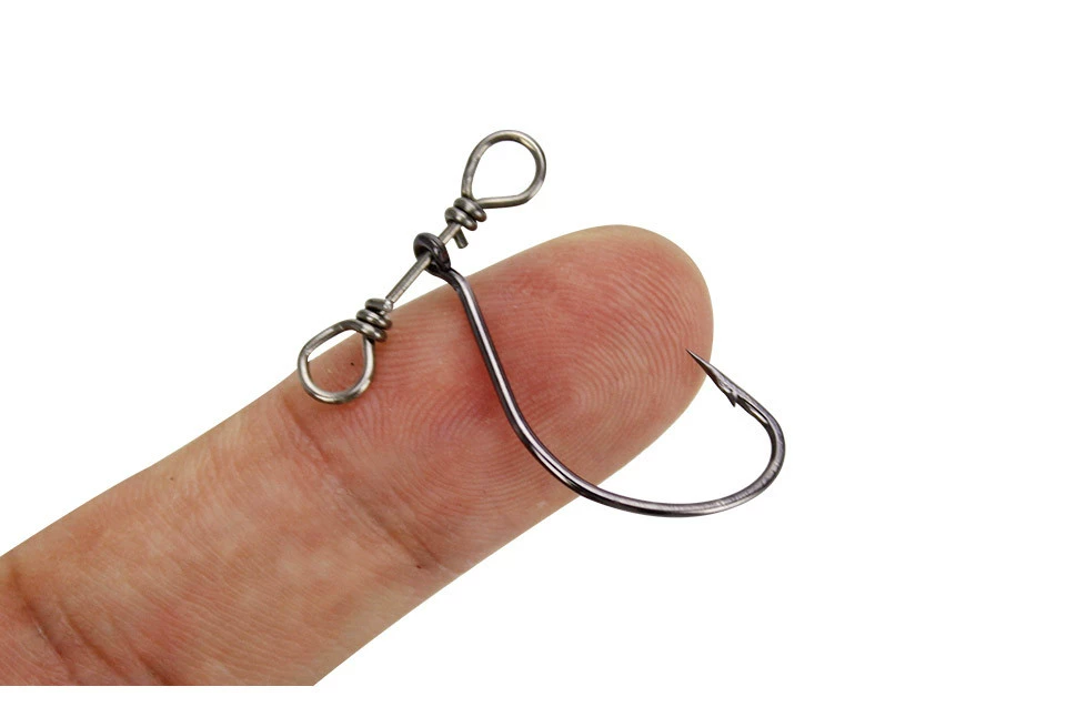 20 piezas anzuelos de tiro en línea, plantilla de tiro hacia abajo, anzuelo de pesca de lubina con gusano de espacio amplio con conector giratorio para pesca con señuelo de trucha