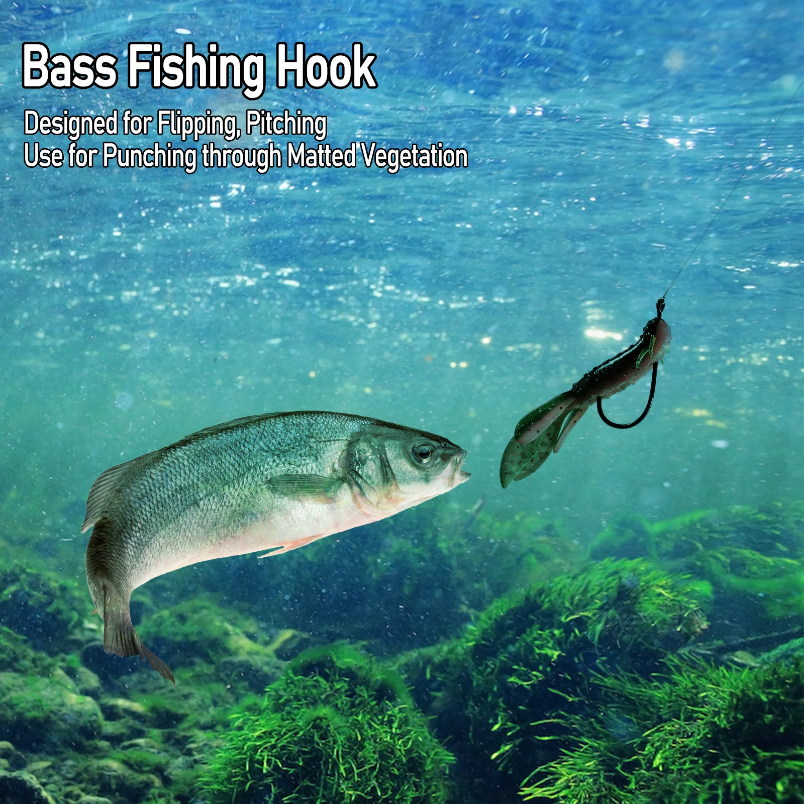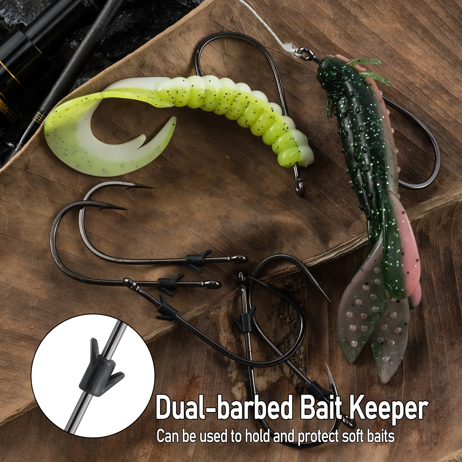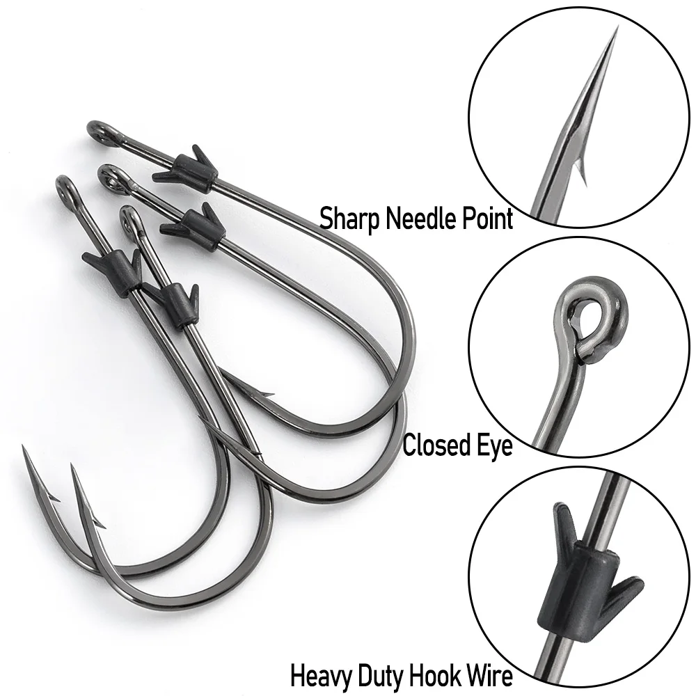 Doble púas: Equipado con un soporte para cebo de púas dobles, el anzuelo giratorio puede evitar que el cebo blando se deslice del anzuelo y extender la vida útil de sus plásticos blandos.
