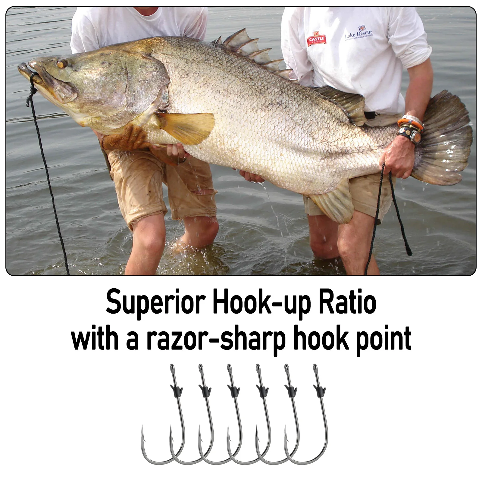 Punta de aguja afilada: completa con una punta de gancho afilada que proporciona una iluminación de penetración rápida del anzuelo, extremadamente para una penetración profunda con un poder de sujeción excepcional.