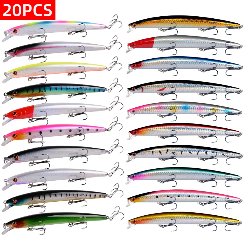 20 unids/set Señuelos de pesca de pececillos biónicos-cebos duros realistas para aparejos de pesca de carpaEspecies de peces objetivo: lubina, maleza, pez de cabeza plana.Material principal: ABSPaquete: señuelo de pesca de 20 piezas