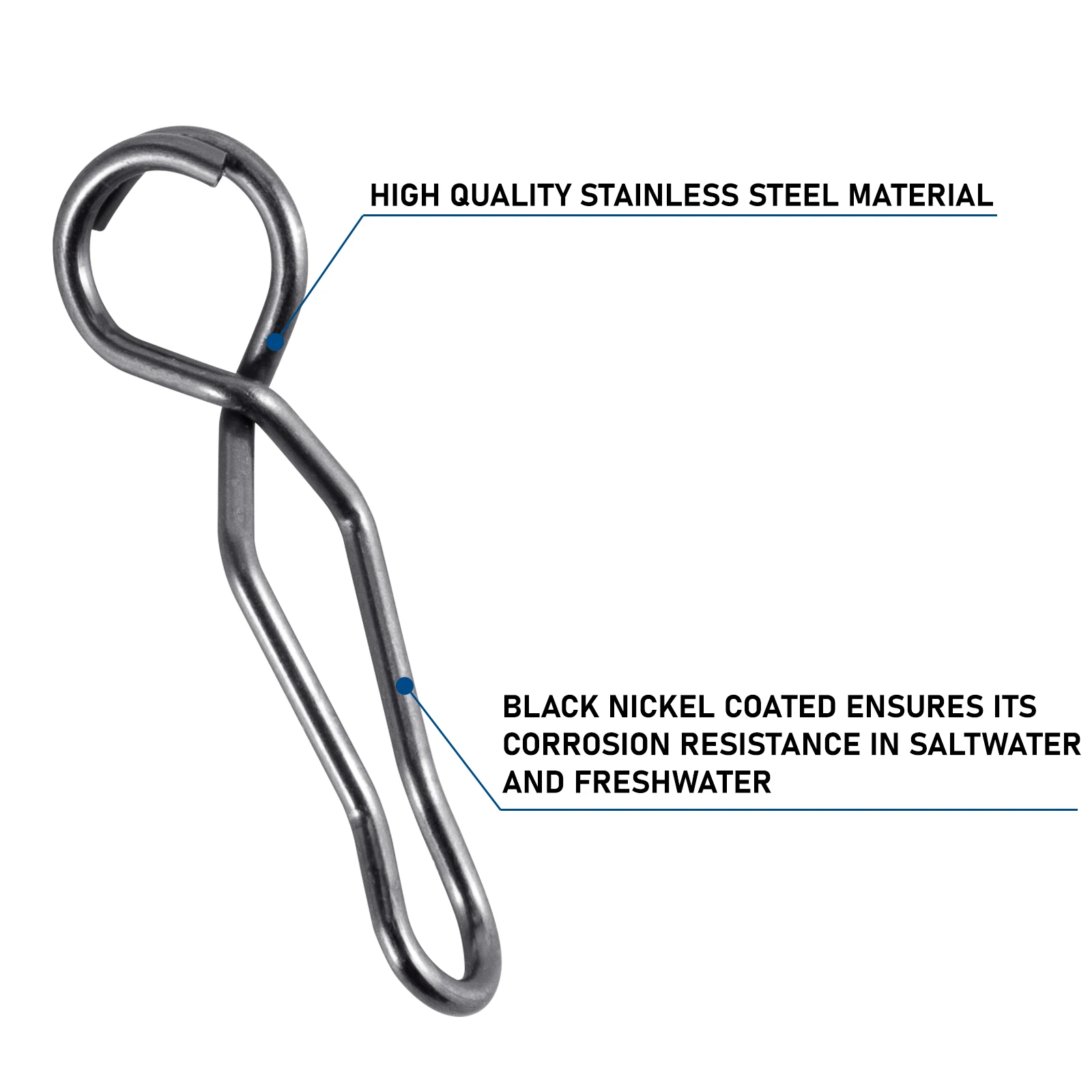 Materiales de primera calidad: los clips de velocidad de pesca están hechos de acero inoxidable de alta calidad y recubiertos con níquel negro.Adecuado tanto para ambientes de agua dulce como salada.